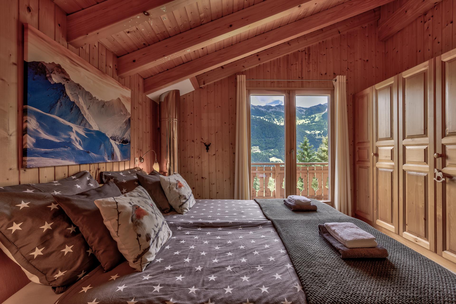 Ein perfektes Chalet für kleine Gruppen in La Tzoumaz zu mieten Chalet Clochette hat drei Schlafzimmer, drei Badezimmer und eine Sauna. Es befindet sich in einer ruhigen, sonnigen Lage mit einem privaten und friedlichen Garten und einer atemberaubenden Aussicht. Im Inneren können Sie die Atmosphäre der Berge genießen und traditionelle Abende mit der Familie oder Freunden am Kamin verbringen.