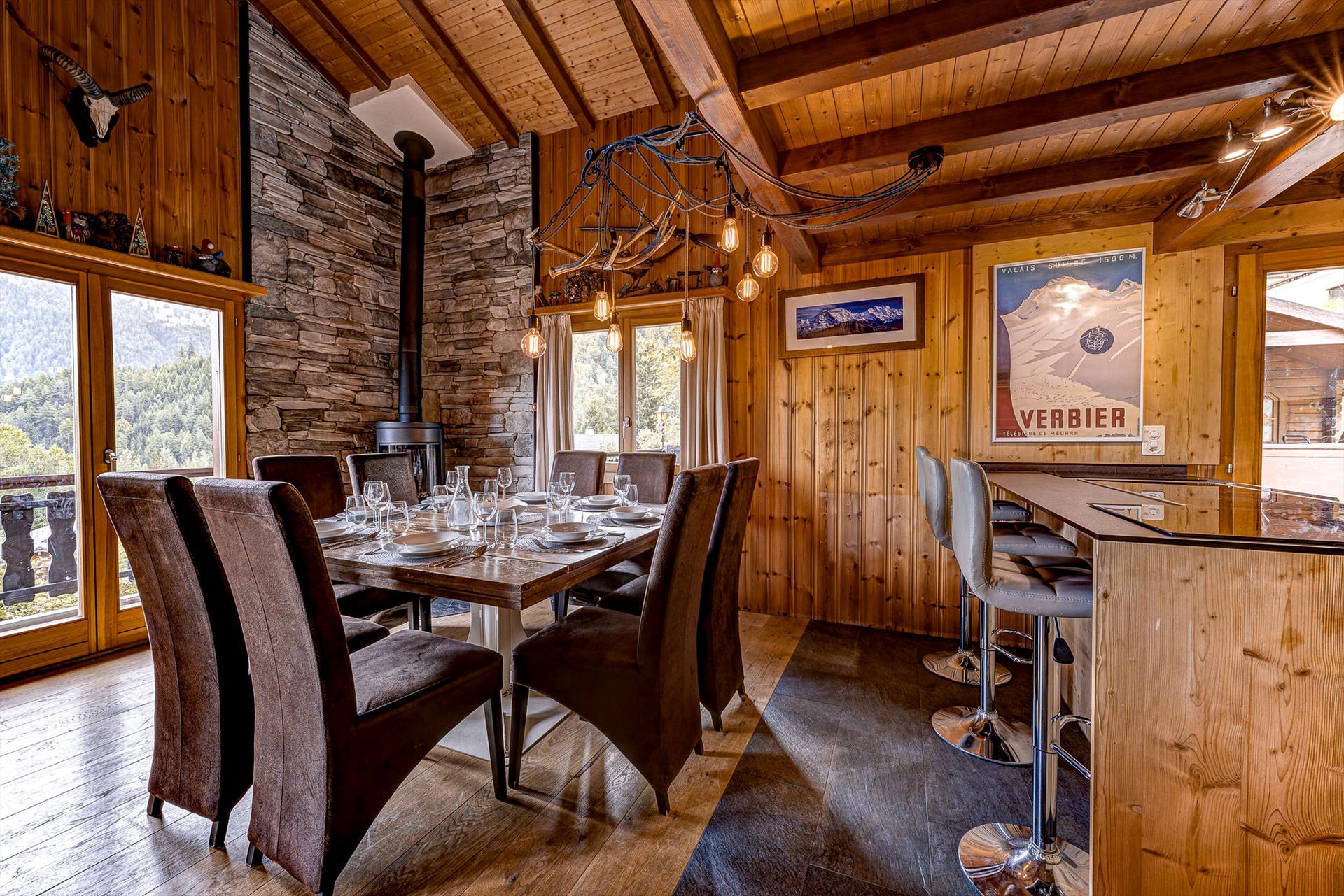 Wenn man nach einem großartigen Tag in den Bergen nach Hause kommt, fällt es schwer, sich nicht zu entspannen, wenn man von den atemberaubenden Panoramablicken von La Tzoumaz umgeben ist und hübsche Schneeflocken sanft am Fenster vorbeiziehen. Im Sommer ist das Vogelgezwitscher aus den umliegenden Wäldern eine wahre Freude. An einem Tag mit blauem Himmel reicht die Sicht 20 km weit, vom Boden des Rhonetals bis zu den Gipfeln des Haut de Cry und des Mont Gond und in die andere Richtung bis zum legendären Vallon d'Arby und seiner unberührten Skitour. Nehmen Sie am frühen Abend mit einem Glas Wein aus der Region in einem bequemen Sessel Platz. Wenn Sie Ablenkung brauchen, finden Sie im Wohnbereich einen Fernseher und einige Bücher. Im Sommer ist es ein wahres Vergnügen, den Grill für das Mittagessen im Garten anzuwerfen, und es gibt eine teilweise überdachte Terrasse mit Sitz- und Essbereichen.