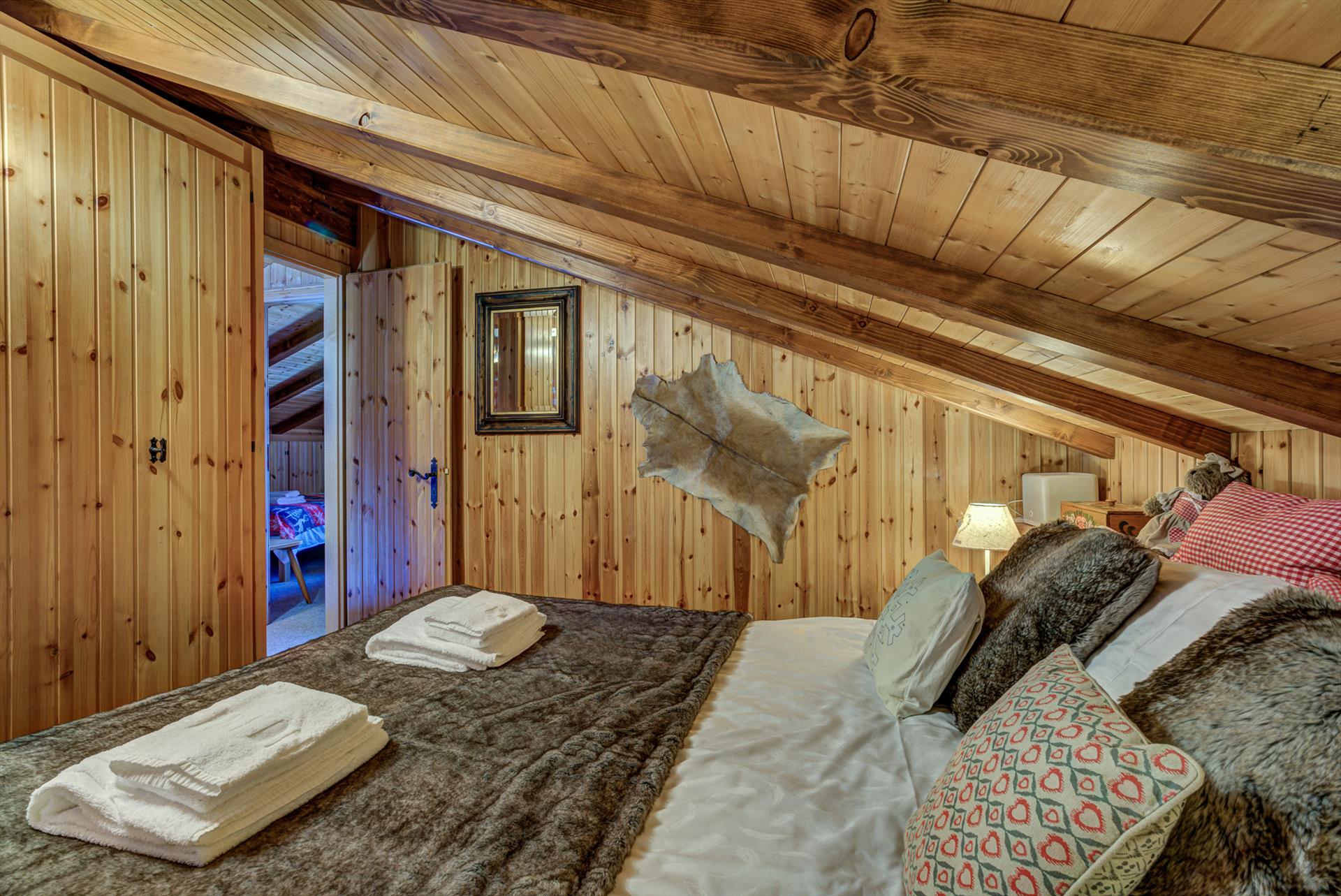Schlafzimmer 3: Im oberen Stockwerk, Doppelbett (200 x 160 cm). Bitte beachten Sie, dass dieser Raum teilweise eine niedrige Decke hat.