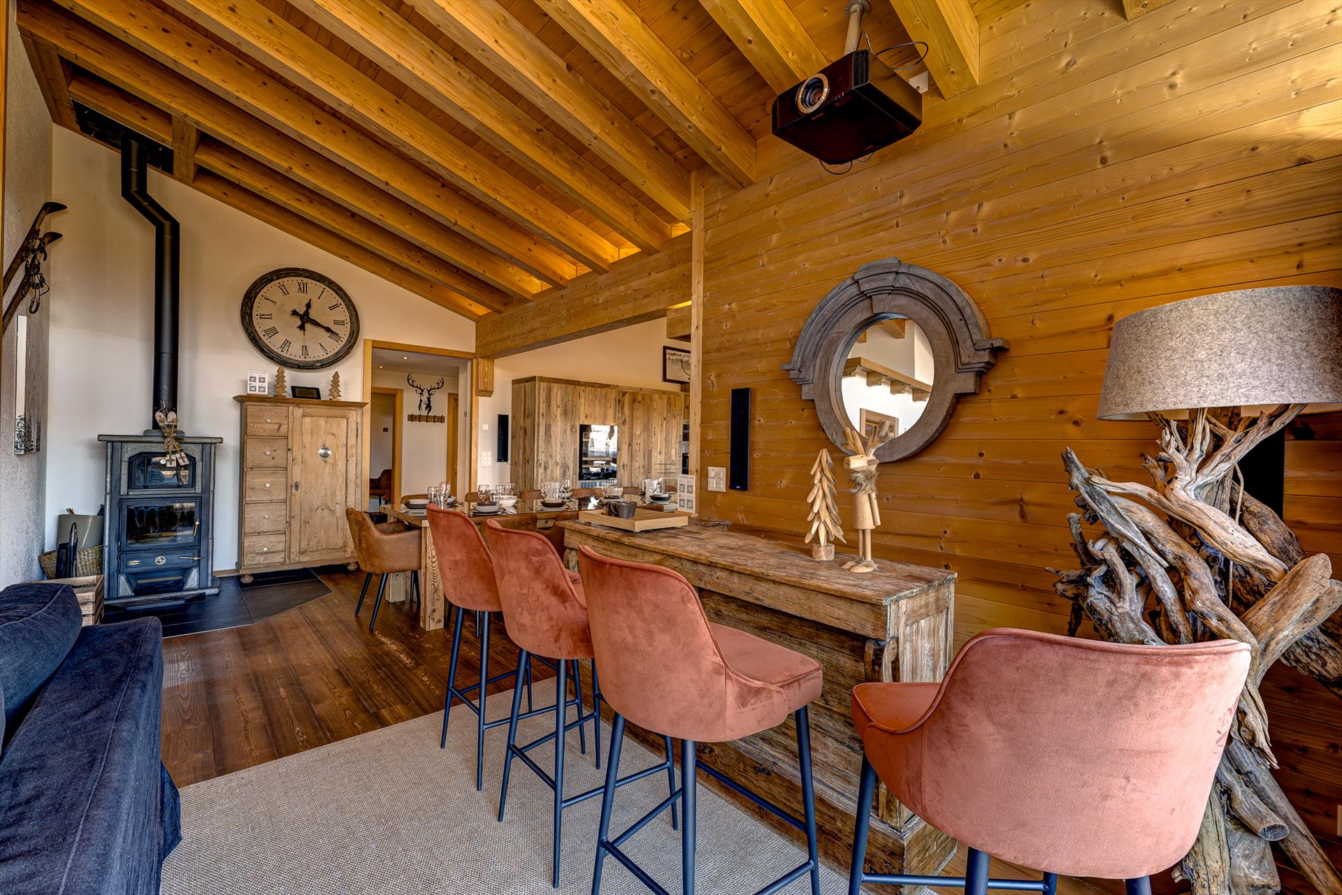 Unterhaltungsfans werden den fabelhaften Heimkino-Bereich mit seinen bequemen Sofas und dem riesigen (216 cm) Fernseher lieben. Das SONOS-Soundsystem lässt sich ganz einfach über das WiFi des Chalets bedienen und taucht Sie in einen überwältigenden Klang.