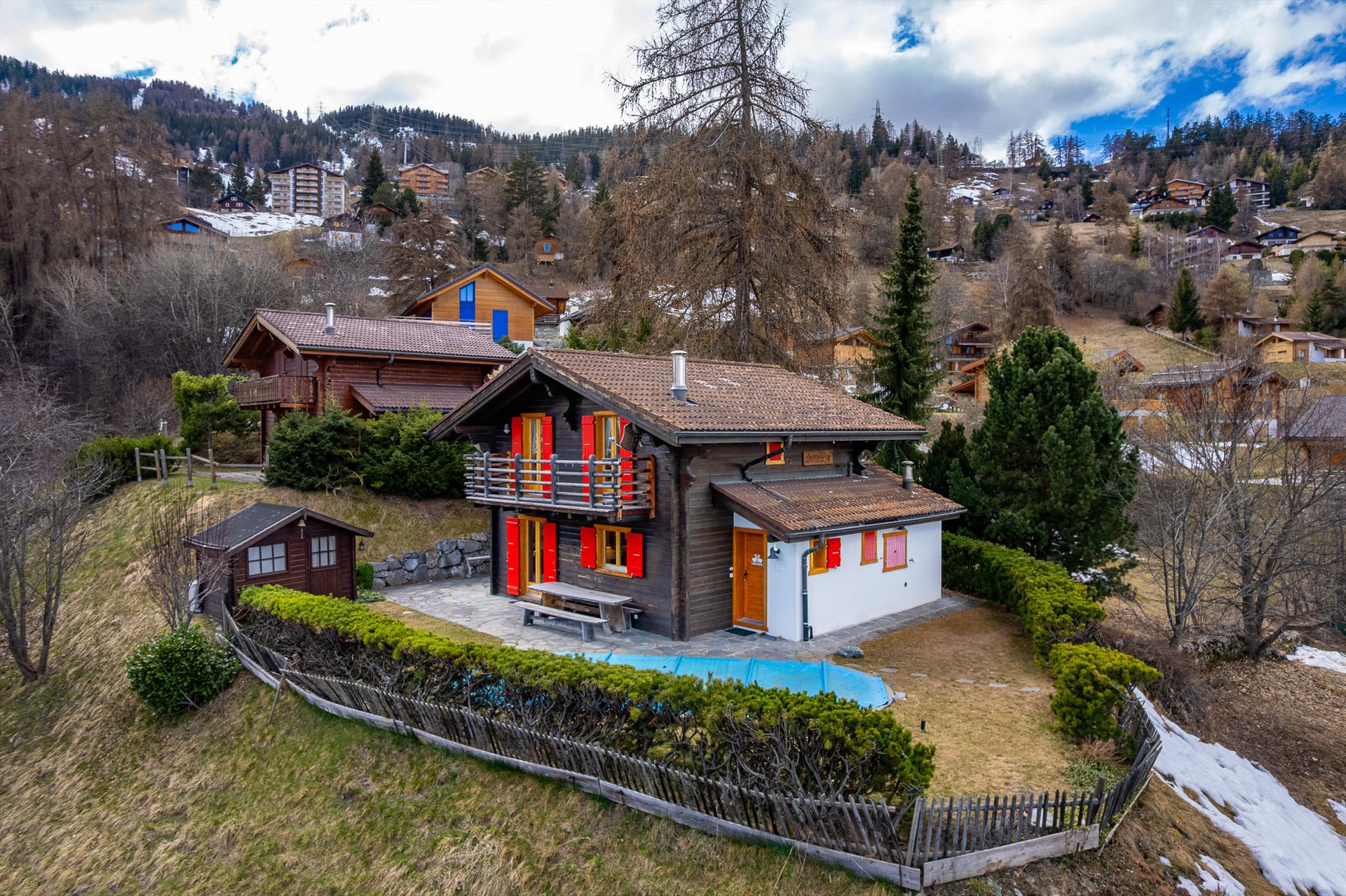 Das Chalet Les Mélèzes befindet sich in hervorragender Lage, nur 100 m von der Skibushaltestelle entfernt, auf einem sonnigen Felsvorsprung mit unverbautem Blick über das Rhône-Tal. Dank seiner erhöhten Lage genießt das Chalet das ganze Jahr über Sonnenschein. Vom 15. Juni bis zum 15. September haben die Gäste außerdem Zugang zu einem beheizten Außenpool, der sich perfekt zum Entspannen im Sommer eignet.