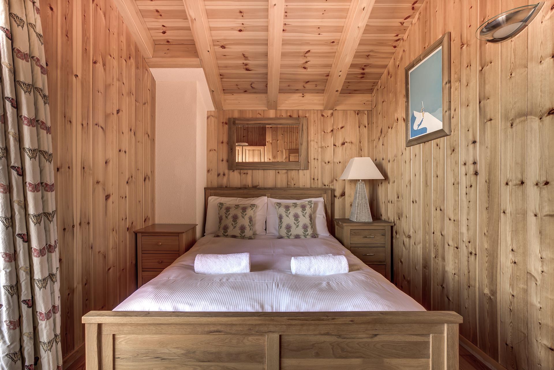 Dieses Chalet mit vier Schlafzimmern bietet bequem Platz für 8 Personen in zwei Doppelzimmern, einem Zweibettzimmer und einem Zimmer mit Etagenbett für zwei Personen. Es gibt drei Badezimmer, zwei mit Duschen und eines mit Badewanne.