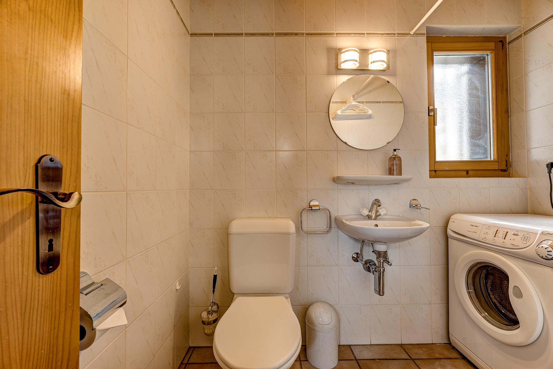 In der unteren Etage befinden sich zwei Bäder, eines mit Dusche, Waschbecken, WC und Haartrockner und das zweite, das zum Doppelschlafzimmer gehört, mit Badewanne (mit Kopfbrause), Waschbecken, WC, Bidet und Haartrockner. Es gibt auch ein Gäste-WC, das sich auf der oberen Wohnetage befindet.