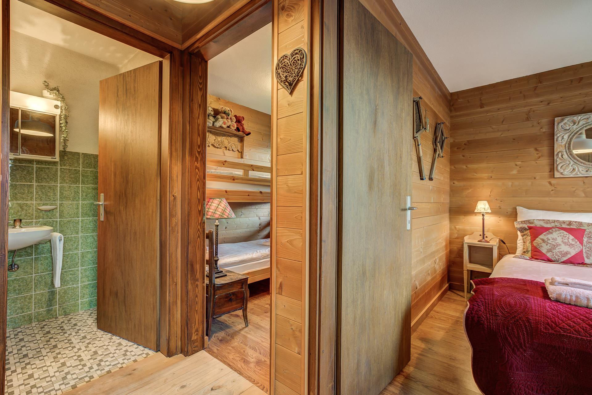 - Das dritte Schlafzimmer hat ein Etagenbett für zwei Personen, einen Kleiderschrank und ein Fenster nach Norden.