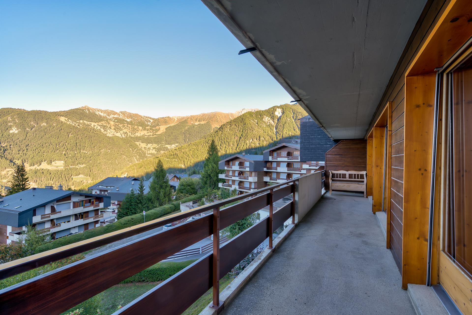 Entspannen Sie sich nach einem erlebnisreichen Tag auf der Piste im gemütlichen, holzverkleideten Wohnbereich, hören Sie Musik oder lenken Sie sich mit Kabel-TV ab, oder setzen Sie sich einfach auf den Balkon und genießen Sie den herrlichen Panoramablick auf die Wohnung. An einem Tag mit blauem Himmel reicht der Blick 20 km weit, bis zu den Gipfeln des Haut de Cry und des Mont Gond. In den Frühlings- und Sommermonaten ist der Balkon der perfekte Ort für eine Tasse Kaffee am Morgen, wenn die Sonne über der Berglandschaft vor Ihnen aufgeht. Ein Wanderweg führt direkt vor den Wohnungen vorbei, wenn Sie den Berghang erkunden möchten. Ansonsten ist es nur ein kurzer Spaziergang durch den Ort, um die zahlreichen Bars und Restaurants, den Spielplatz (oder die Eisbahn im Freien, je nach Jahreszeit!), das Schwimmbad und den Sommer-Tennisplatz zu erleben.