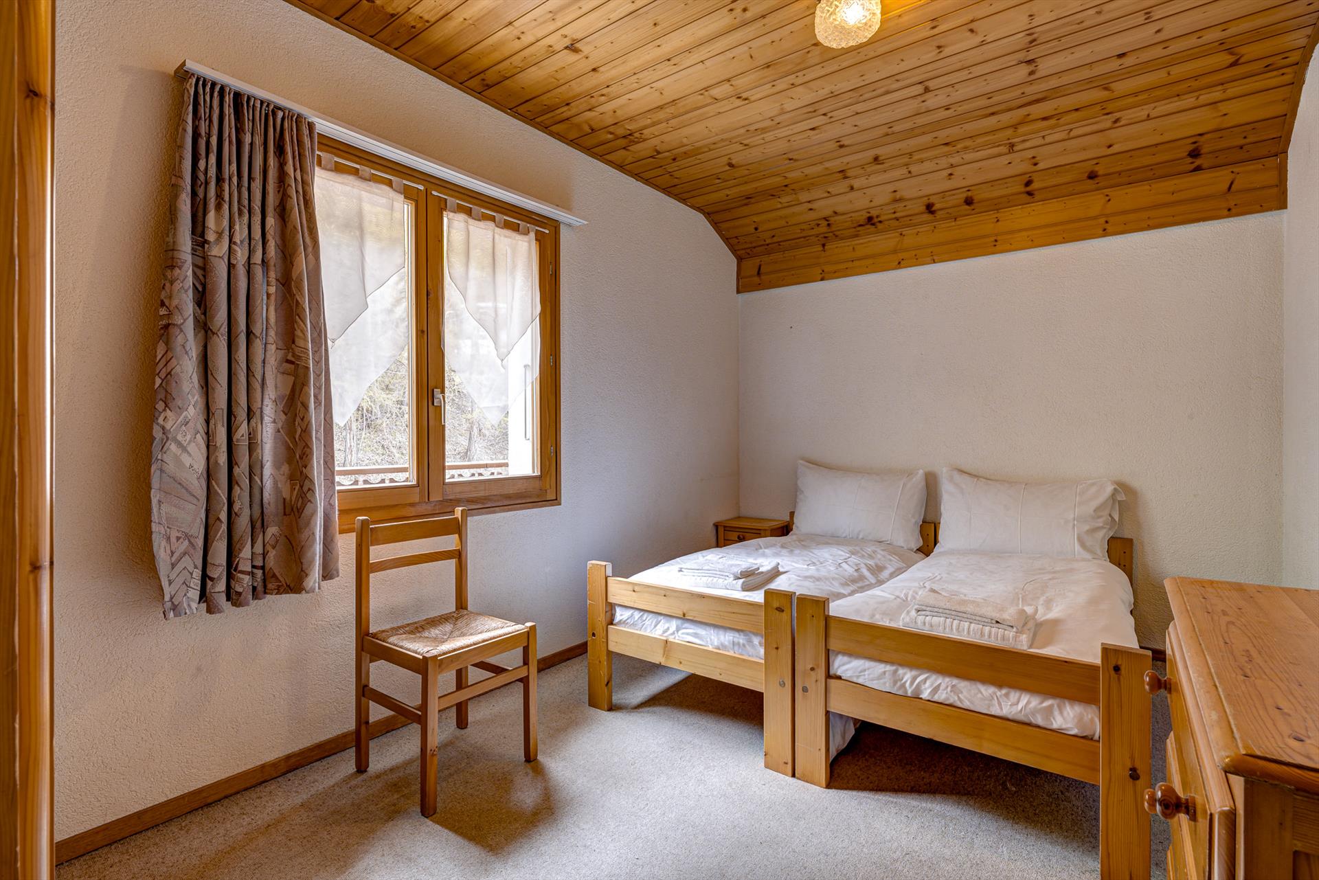 Schlafzimmer 2 - zwei Einzelbetten (90x200cm), Kleiderschrank, Kommode, Blick auf die Berge