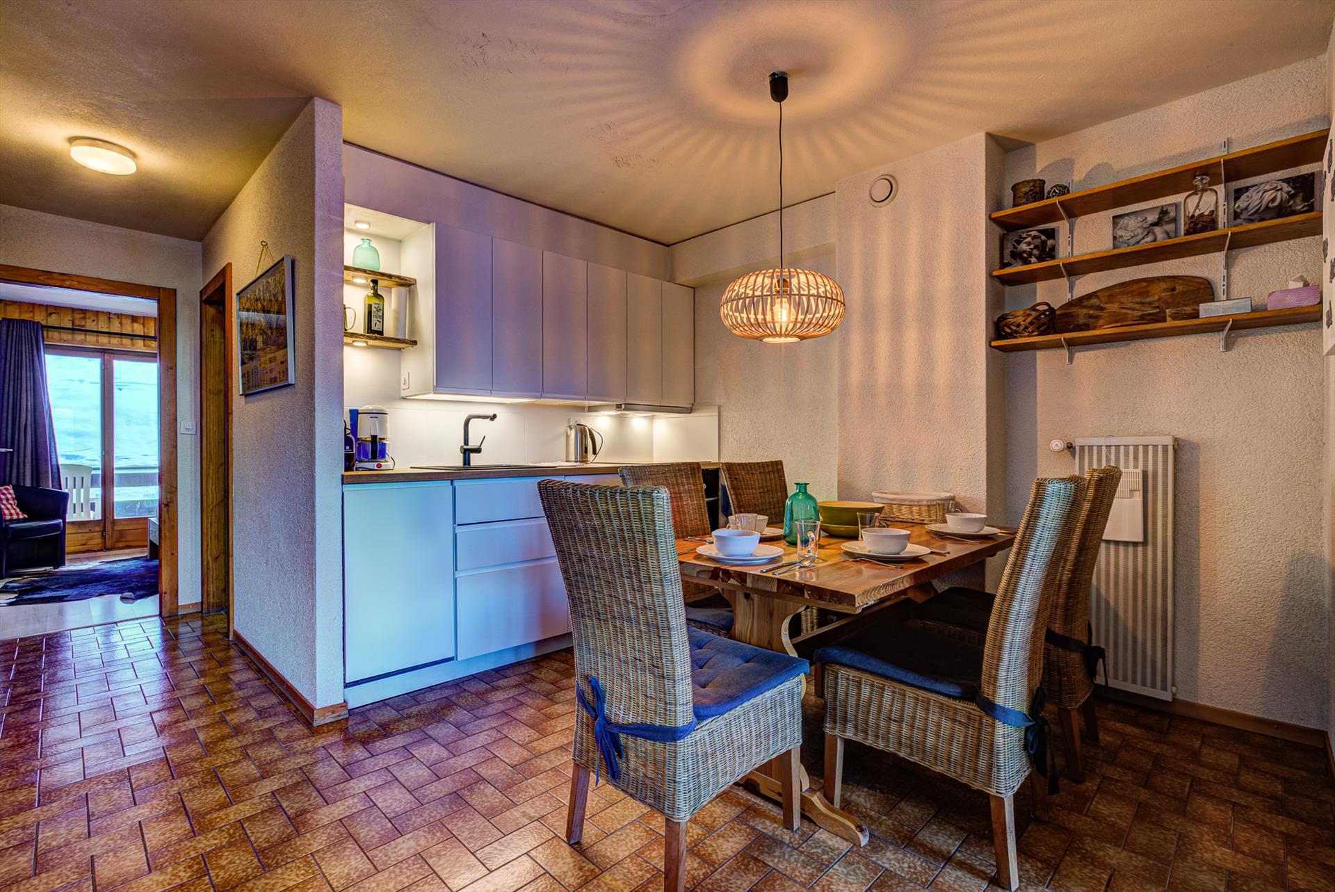 This traditional two-bedroom apartment in a central location is an easy walk to the town centre. The living room balcony looks across a rooftop garden to the village centre below, and the stunning mountain range beyond.