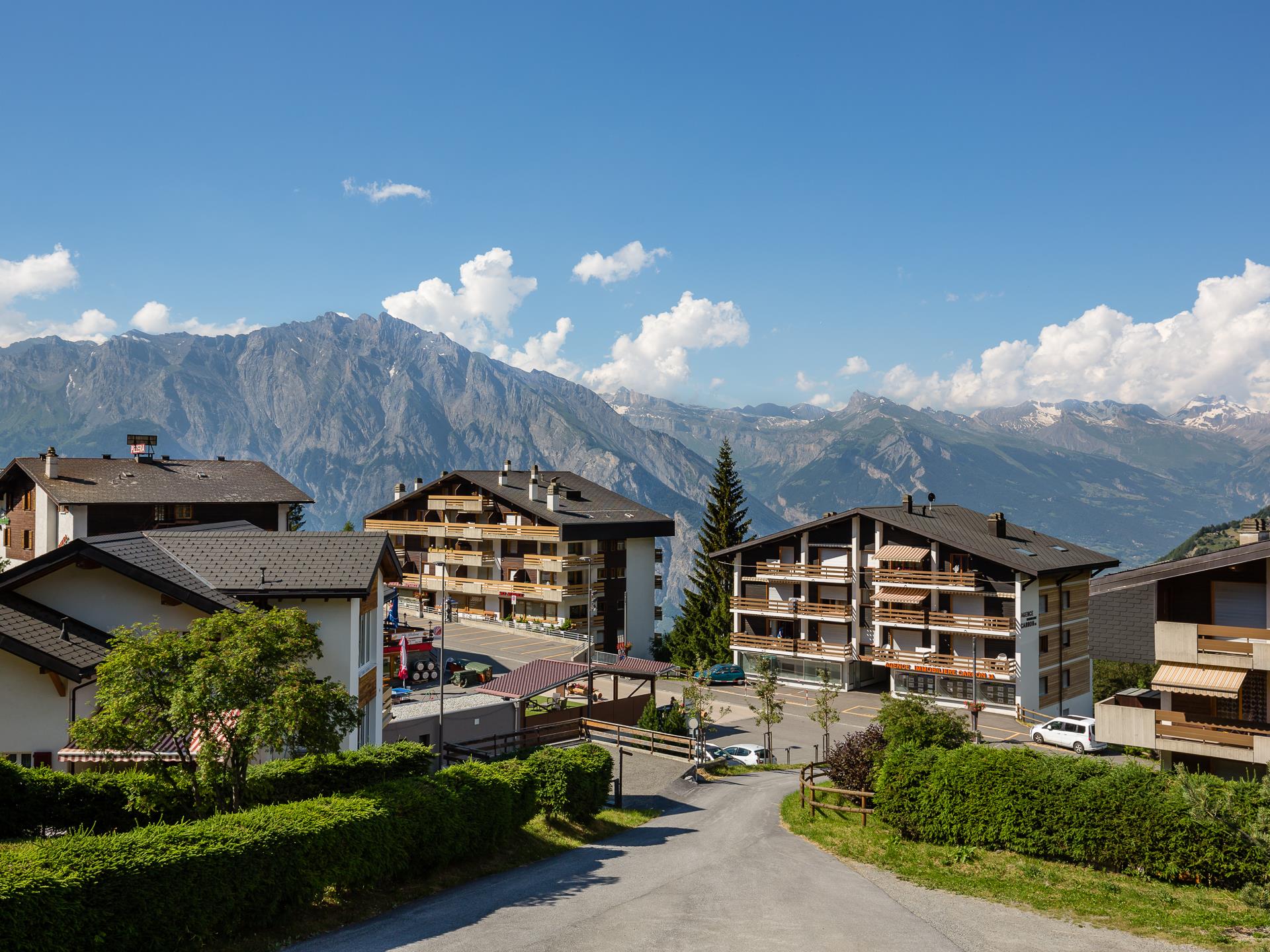 Relax in the comfortable sofas after a hard day on the slopes, listen to some music or distract yourself with cable-TV, or simply sit on the balcony and admire the beautiful panoramic views that face the apartment. On a blue-sky day, the view stretches 20km, up to the peaks of the Haut de Cry and the Mont Gond. The balcony can be a perfect spot for a cup of morning coffee as the sun rises over the mountainscape in front of you during the spring and summer months. A footpath passes just in front of the apartments if you want to explore the mountainside. Otherwise it is ony a short walk into the resort to experience its sprinkling of bars and restaurants, playground (or outdoor ice rink, depending on the season!) swimming pool & tennis court.