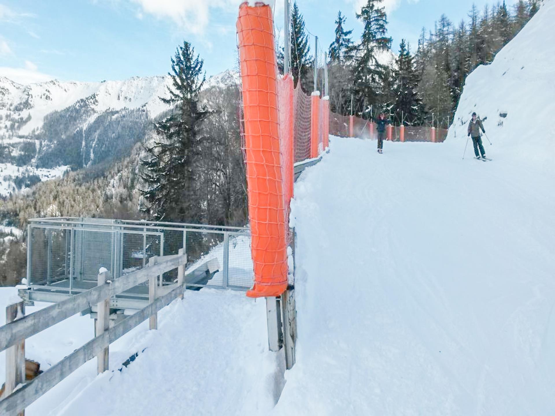 Down on the parking level there is a ski-storage locker with integral ski-boot dryers where you can change out of your shoes and into your ski-boots. From here a shuttle cabin on rails will take you up the 80m climb to the piste, from where you can ski 500m down to the ski-lift. At the end of the day, (or perhaps even at lunchtime!) you can take the shuttle cabin back down to the ski-storage locker and store your equipment until the next day.