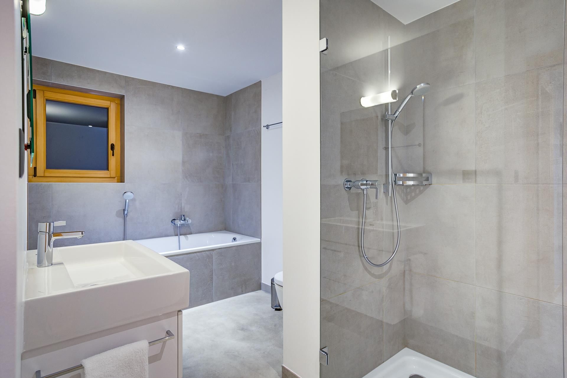 The open-plan kitchen features a hob and a combination oven and microwave. There are also staples such as dishwasher, fridge & freezer, kettle, toaster, electric filter coffee-machine and Nespresso coffee-machine. There are also fondue and raclette sets for a traditional Swiss evening in front of the log fire. A washing machine, dryer, iron and hairdryer are available.