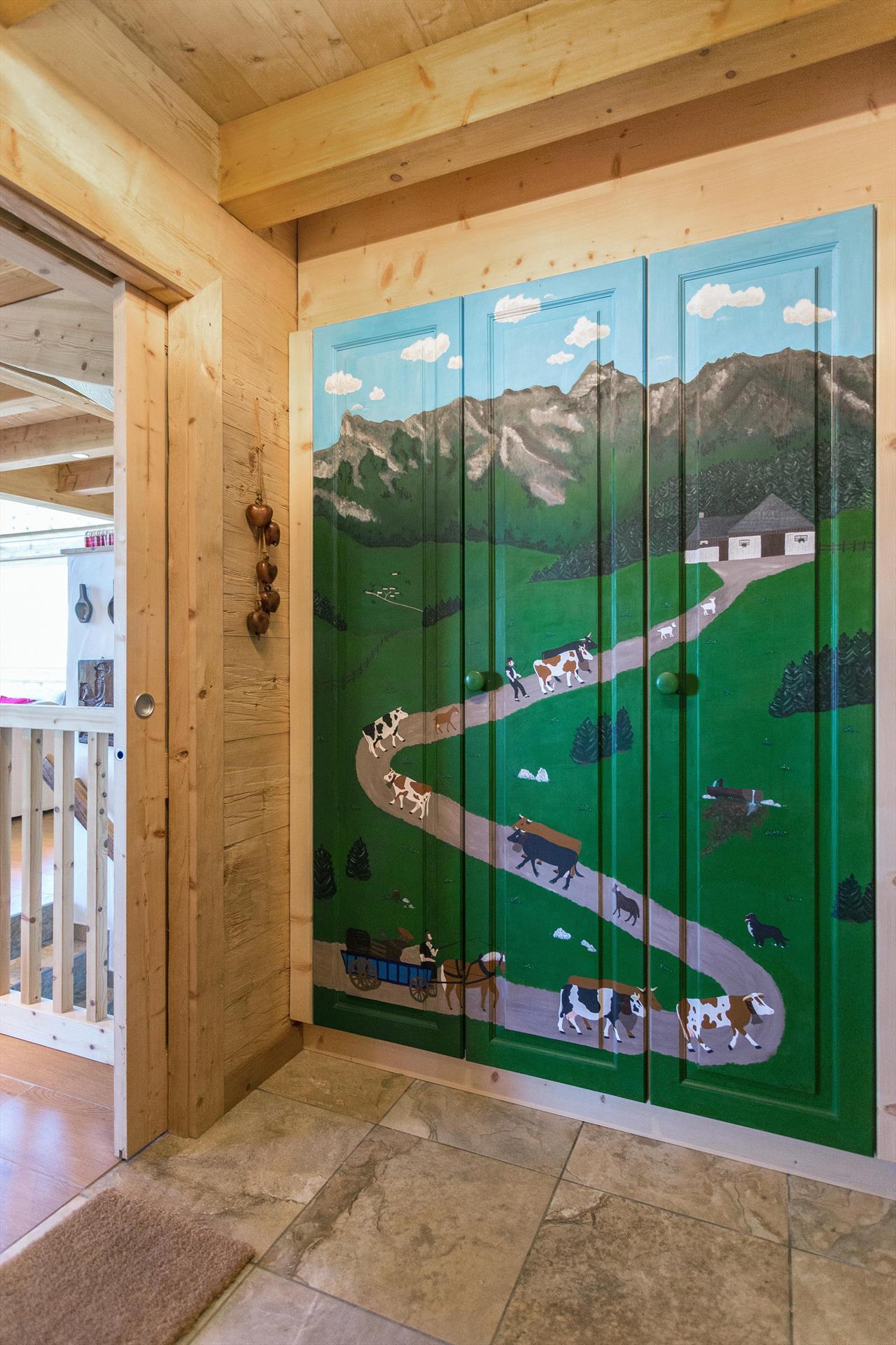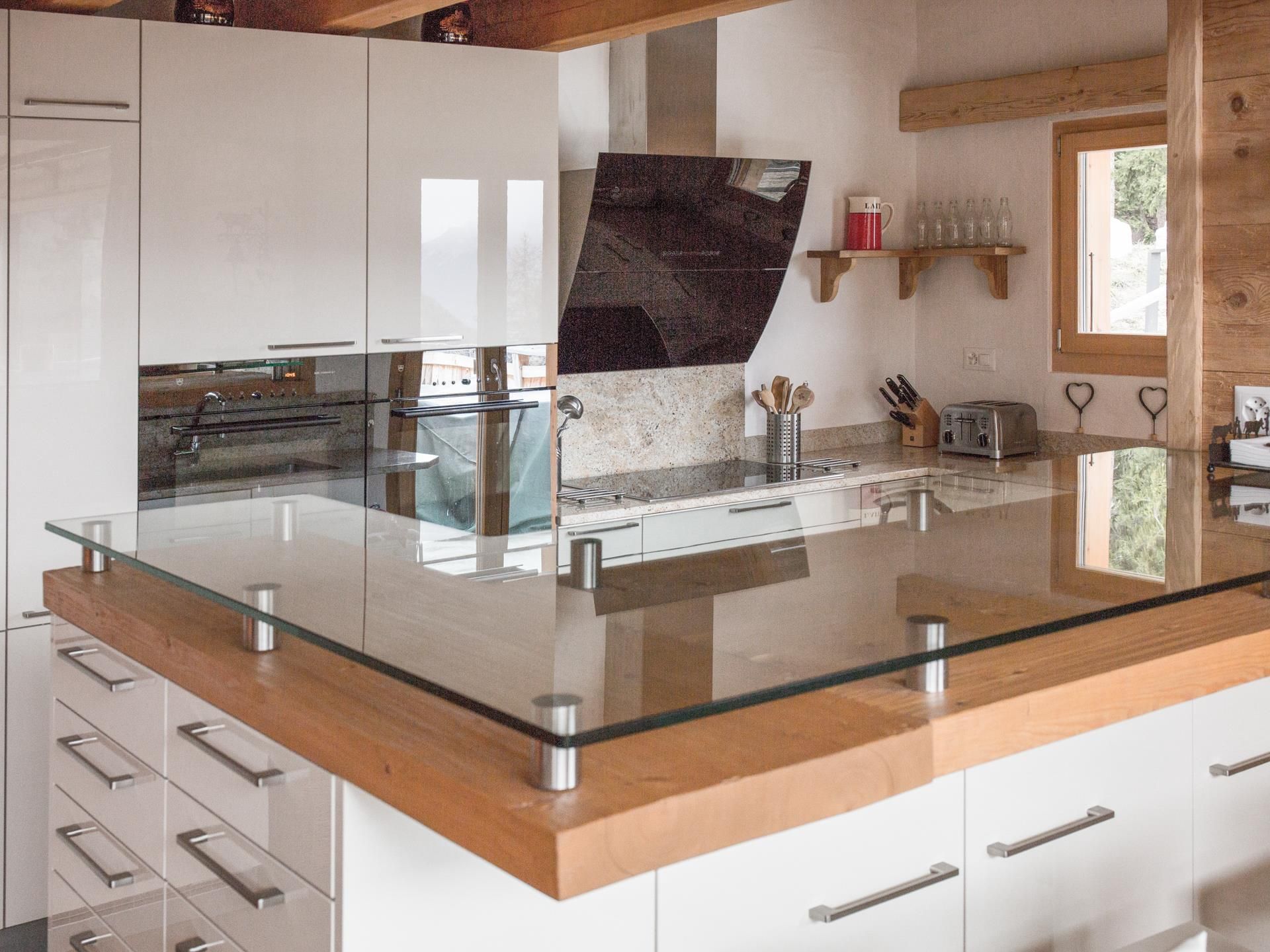 The impressive and state-of-the-art, fully equipped kitchen overlooks the dining room area, separated by a glass and wood bar with seating. Double refrigerators, two full-size Zug ovens, plate-warming drawer, 5-plate Siemens induction cooking surface, separate freezer and Zug dishwasher make cooking for 10 a pleasure. Alongside the staples such as microwave, kettle, toaster, electric filter coffee-machine and Nespresso coffee-machine there are also fondue and raclette sets for a traditional Swiss evening in front of the log fire. A washing machine, dryer, iron and hairdryer are available, and there is a portable gas barbecue for outdoor use. Inside the ski storage room are three toboggans (sledges) for you to enjoy.