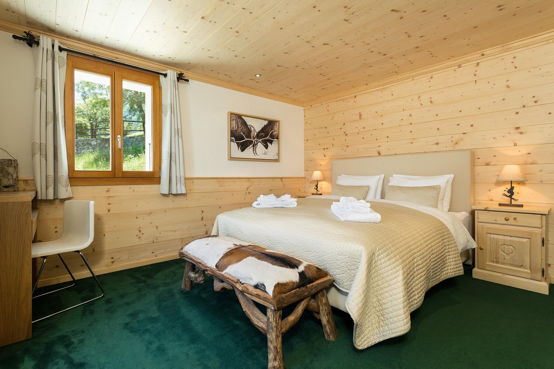 There is reserved parking for 2 or 3 cars just above the chalet, with easy access down some gentle steps with a handrail. A car is recommended when staying in this chalet as it is located in a secluded area, by road it is 2km from the ski-lifts and village amenities. At least one car is advisable in both summer and winter. The "Bisse de la Chapelle" footpath winds upwards through the forest and reduces the distance to the shops to 500m, however in winter this may be snow-covered and slippery. Winter tyres and/or snow chains are necessary in winter due to frequent snowfalls.
