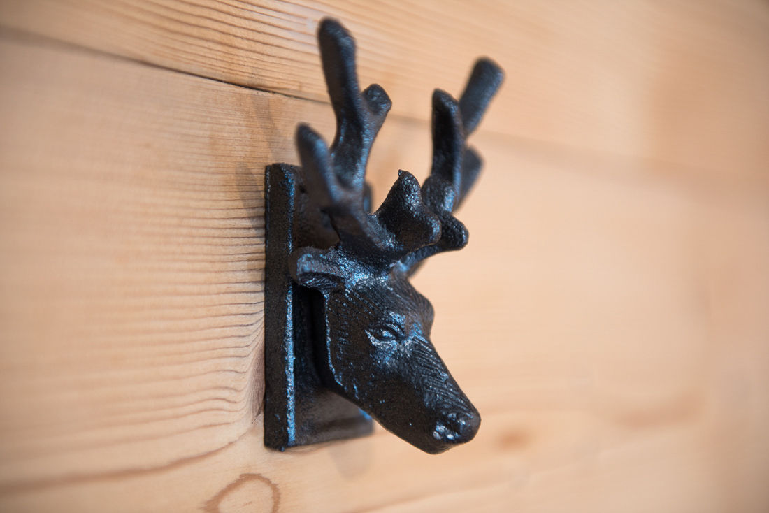 Patio doors on this level lead to the balcony, terrace and upper garden. The outside garden has two levels, great for summer barbecues, dinners on the large outside table, a game of table tennis or lounging on the deck chairs. The entrance is on the lower floor through the ski-room, which has enough space for ski gear for 12 people and a separate heater to ensure gloves and ski boots are comfortable and dry again the next day.