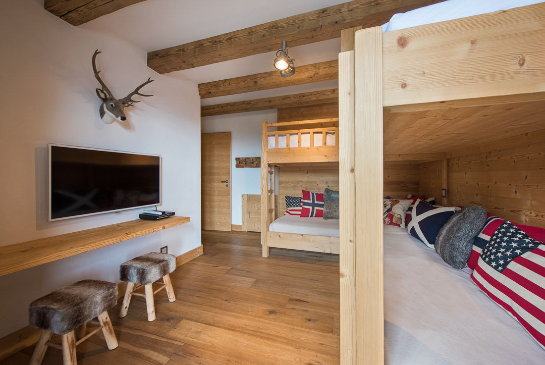 - Children's bedroom with full-size single bunk beds for 4 people, large flatscreen TV and DVD-player.