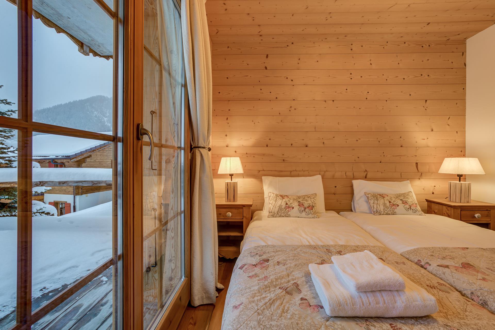 This chalet is a modern, 5-bedroom, ski in & out chalet with jacuzzi and sauna. Panoramic windows overlook the the valley filling your mind with the beauty and nature of the surrounding mountains. Chalet Chocolat's quiet location, which is only 100m from the piste, makes it a fantastic location for a relaxing winter break with family or friends.