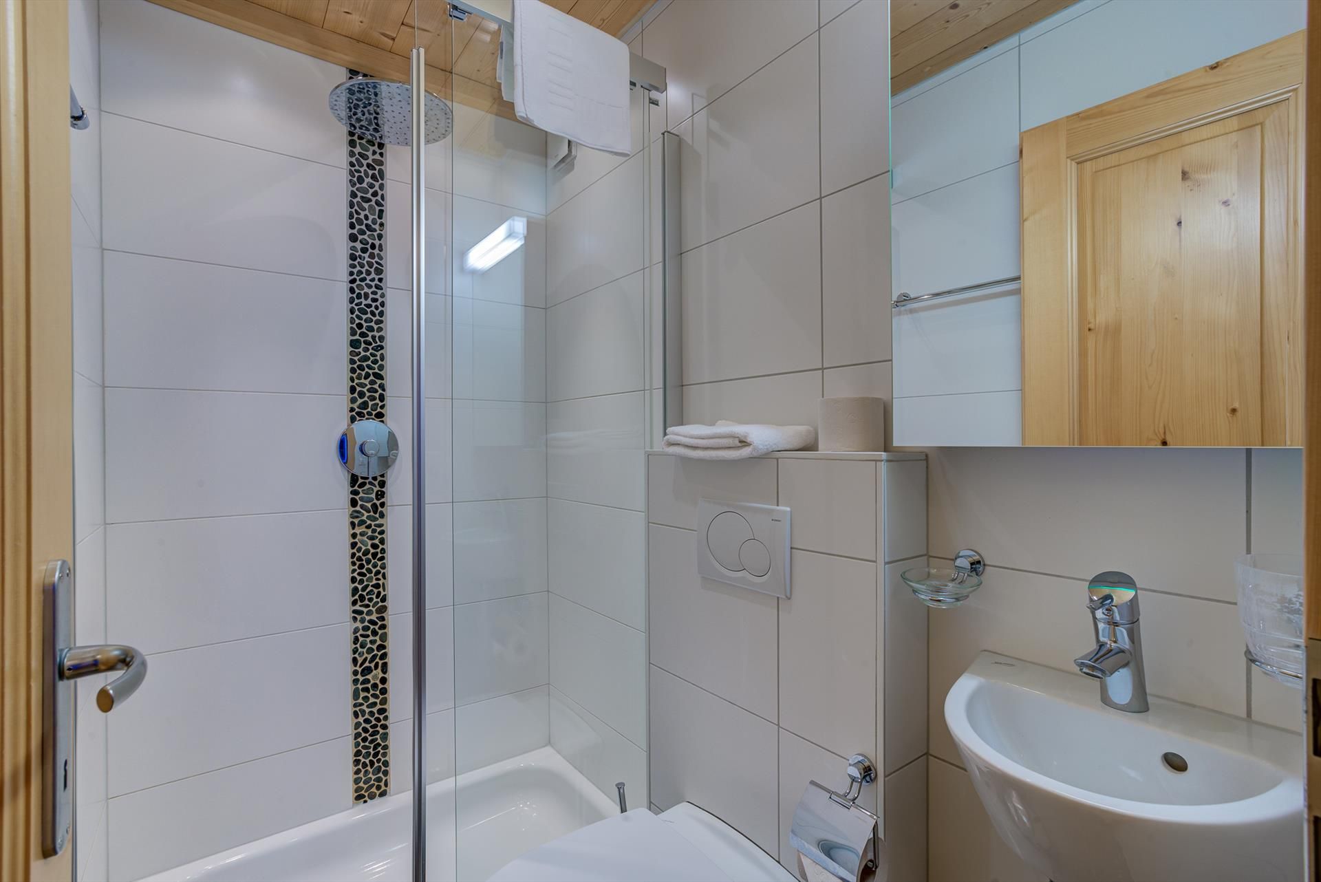 The main floor of this chalet features a spacious open plan living/kitchen/dining area. The kitchen is well equipped with everything you might need for holiday catering, with oven, dishwasher, hob, microwave, filter coffee machine, Nespresso machine, and a raclette set. In the living areas a flat screen TV, a CD-player and iPod docking station, and a Blue-ray DVD player with a selection of DVDs are readily available. A gallery overlooks the living area and has comfortable arm-chairs for additional seating.