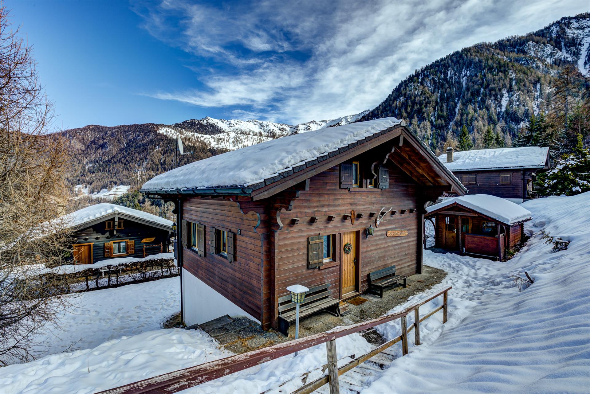 There is a single, reserved parking space at the top of the chalet access steps, and a second, reserved parking space in the shared car park underneath the apartment building opposite. Additional parking spaces are available in the free outdoor public car park 350m up the road. Winter tyres and/or snow chains necessary to reach the village and the apartment in winter due to frequent snowfalls and a steep driveway, however chains must be removed before entering the car park underneath the apartment building. Access to the chalet is via outdoor steps leading down through a garden area to the chalet. Car not strictly necessary due to proximity to ski-lifts, restaurants and supermarket - contact us for airport or railway transfers.