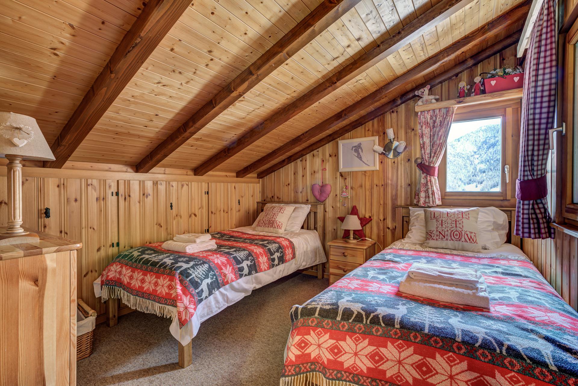 Bedroom 4: On the upper floor, 2 single beds (190 x 90 cm each). Please note this room has a partial low-height ceiling.