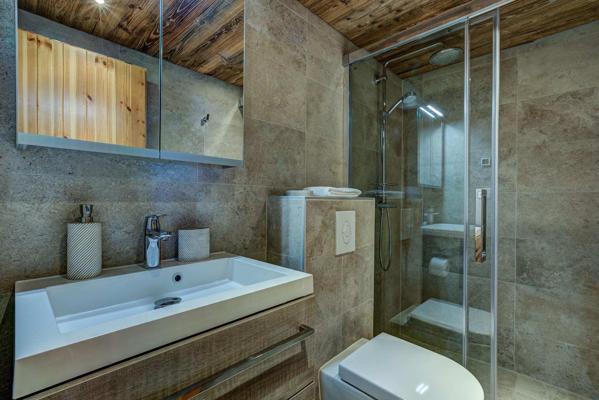 The apartment is only an 1km walk through the Resort Centre from the Savoleyres telecabin. There is a public bus stop only 150m from the apartment at the top of the steep driveway. There is a free skibus that stops here in winter during operating hours of the ski-lifts. The main Savoleyres telecabin is less than a kilometre from the chalet and so it is possible to either take the free ski bus three stops to the telecabin, or walk uphill through the village. Of course the walk home is much easier as it is downhill at the end of the day. If you wish to access the beginner slopes you can either stay on the bus until further up, or drive and park up at the Etablons bar.