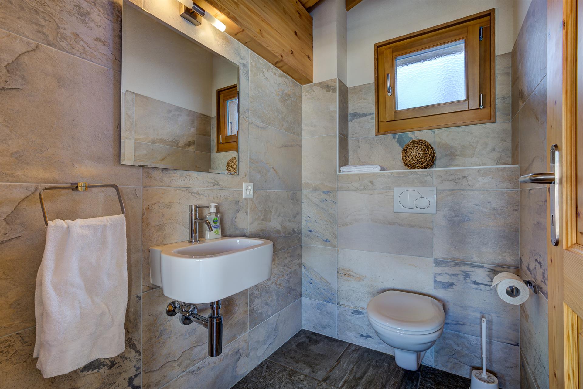 The two large bathrooms and four spacious bedrooms in La Tzoumaz Chalet Gentiane have each been beautifully decorated and finished to give a homely feel. With one twin room, three doubles and an extra single bunk over one of the double beds, the chalet sleep up to 9 people with ample space for two families, or a large group of friends. In addition to the two large bathrooms, there is a separate WC on the main living floor.