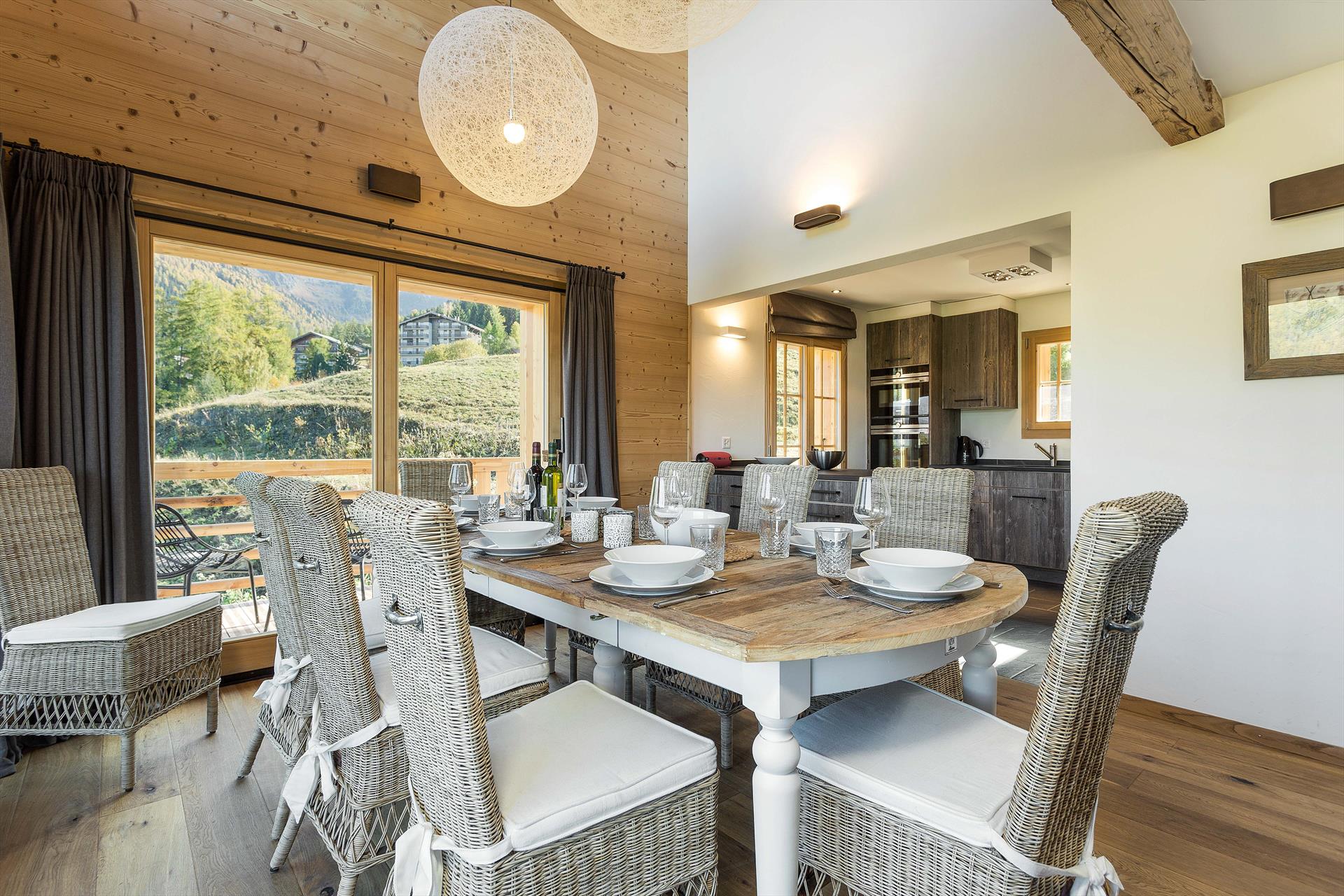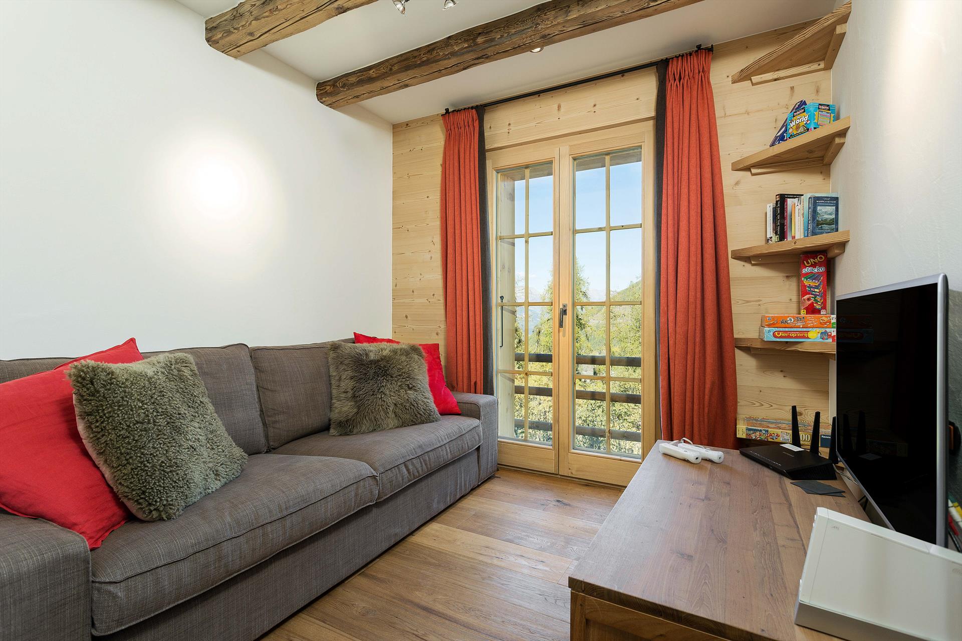 When you get home from a full day in the mountains, why not unwind in the sauna before settling into a comfortable seat for afternoon tea? You can send the children downstairs to the separate games room, or upstairs to play on the mezzanine area, and there is flatscreen TV in all the bedrooms. It's difficult not to relax when you see the beautiful and ever-changing views from the chalet. On a blue-sky day, the view stretches 20km, up to the peaks of the Haut de Cry and the Mont Gond, which tower 2000m over the Rhone Valley floor below. When the snow is falling, you can watch it drifting slowly past you, as it settles over the traditional village of Iserables across the nearby valley. The large balcony is perfect for some morning yoga or stretching, and the private garden area is ideal for sunbathing and barbecues.