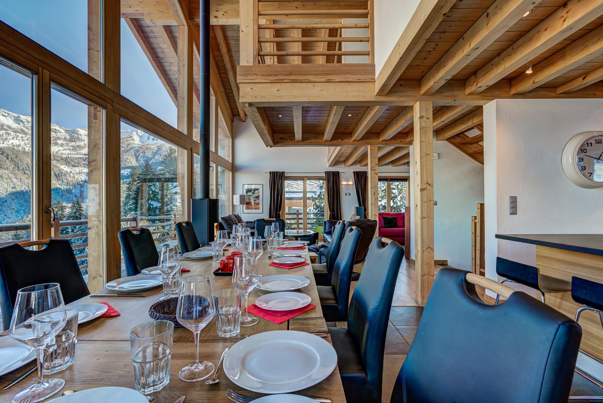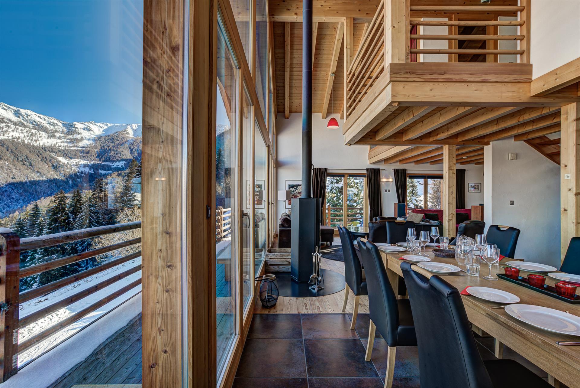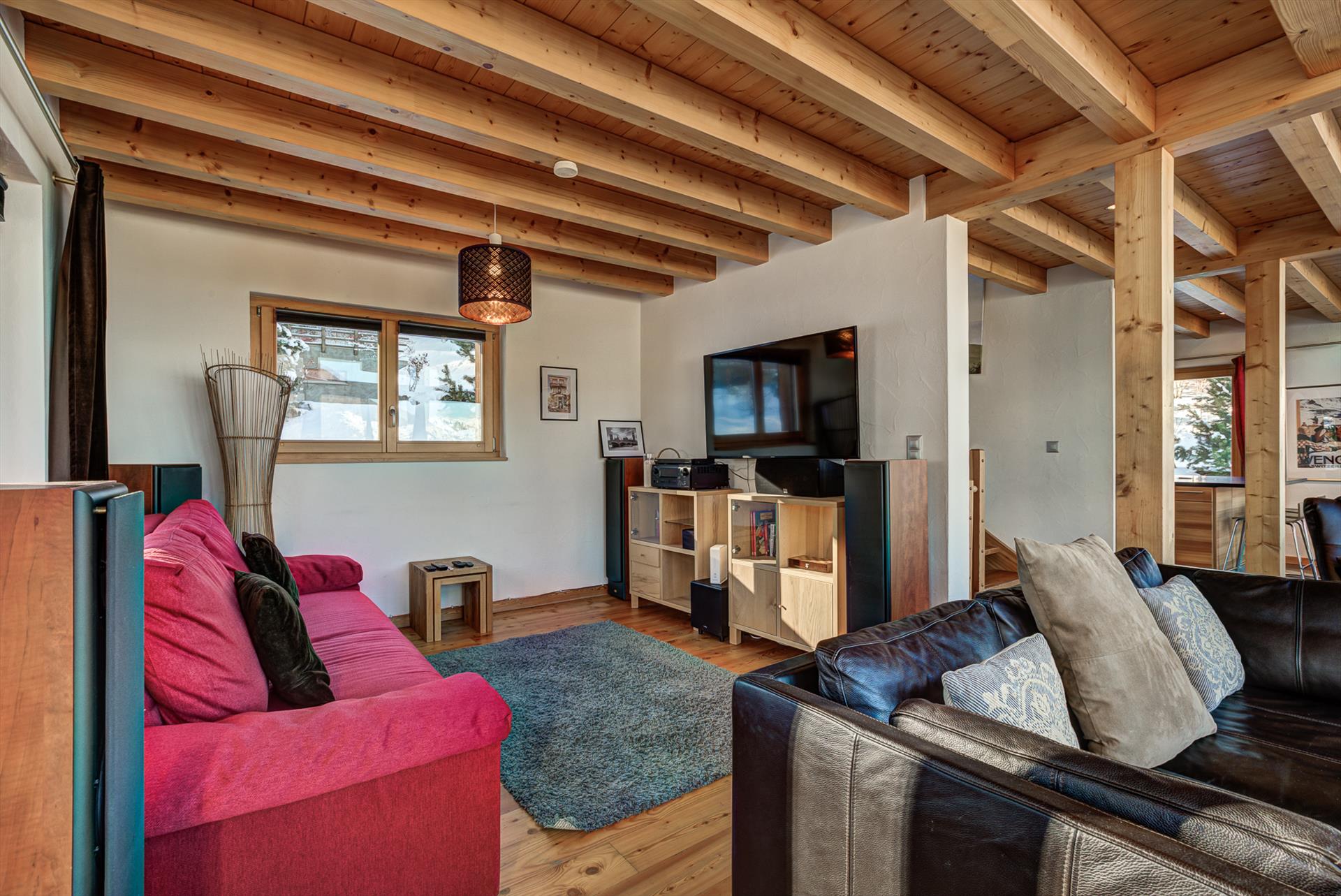 The new outdoor jacuzzi, installed for winter 2023/24 is a fabulous addition to this magnificent chalet. When you step inside the chalet it's hard not to relax in front of the huge panoramic feature windows. Take a seat in one of the comfy swivel chairs with a glass of local wine at the end of a hard day on the slopes. The TV corner is equipped with comfortable sofas and a flat-screen television with Cable-TV, DVD player and a stereo. Children will love the privacy of their own dormitory-style room upstairs with TV and glass windows overlooking the downstairs living area. Also very popular in summer, Chalet Tubber has lawns on several sides and balcony areas perfect for yoga sun salutations, a barbecue or a game of boules. On a blue-sky day, the view stretches 20km, up to the peaks of the Haut de Cry and the Mont Gond, and in the other direction towards the legendary Vallon d'Arby and its un-pisted ski itinerary.