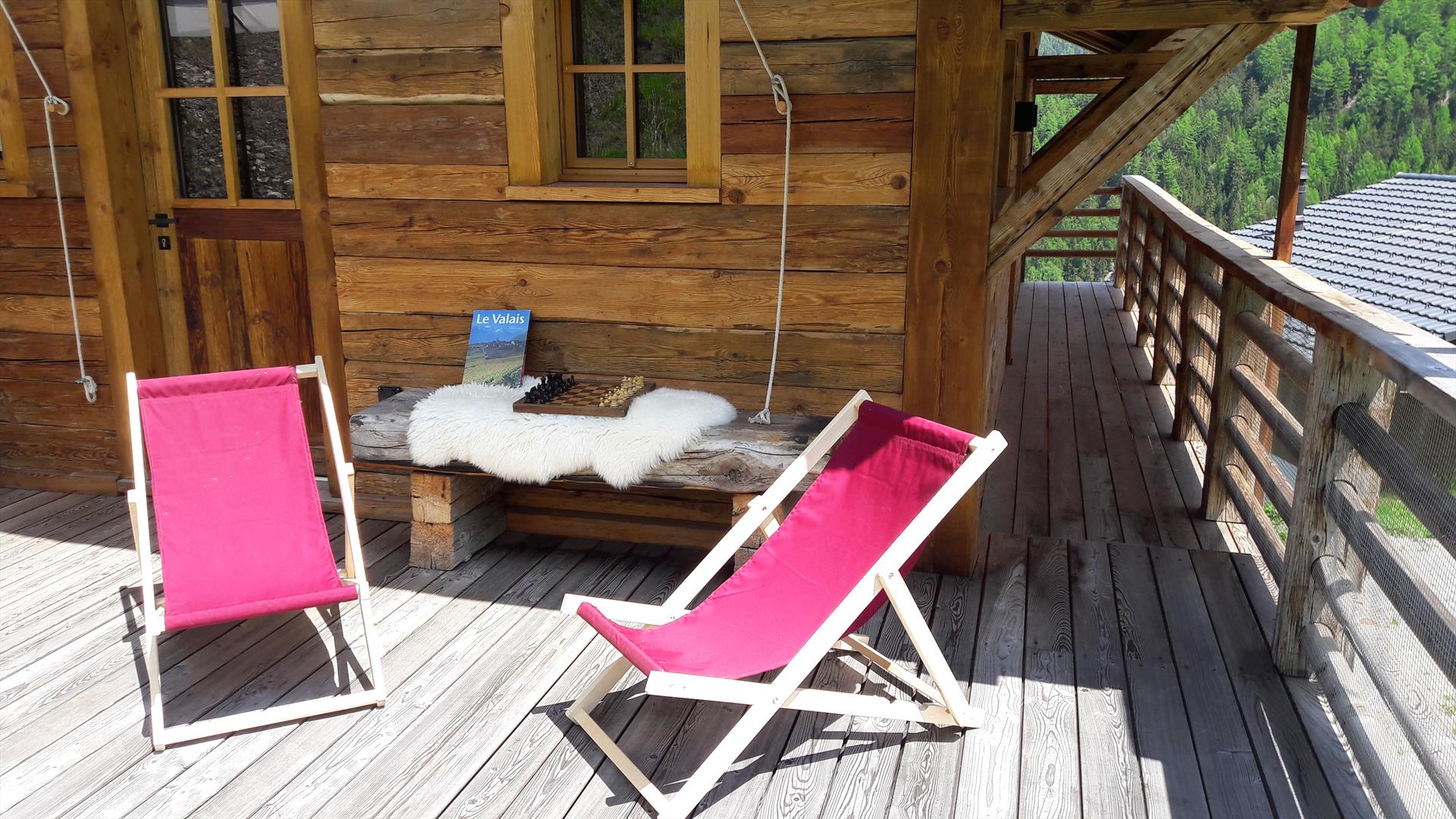 After discussing the highlights of the day in the mountains over a delicious cheese fondue, why not move to the living room sofa to watch the cable-TV (the living room area measures 2m70 x 3m30 and is open to the dining area), or step outside onto the balcony to admire the stunning views across the valley to the mountain range beyond. The south-facing deck area benefits from tables and chairs to enjoy a barbeque in the warmer summer months.
