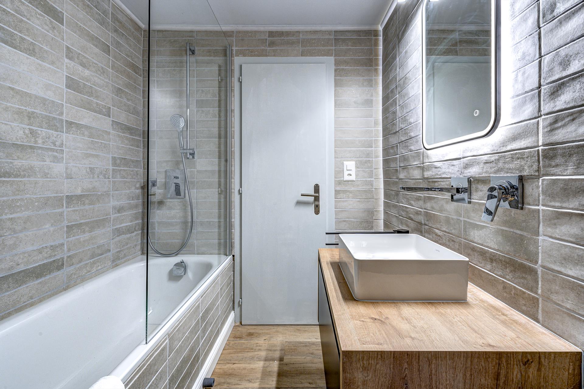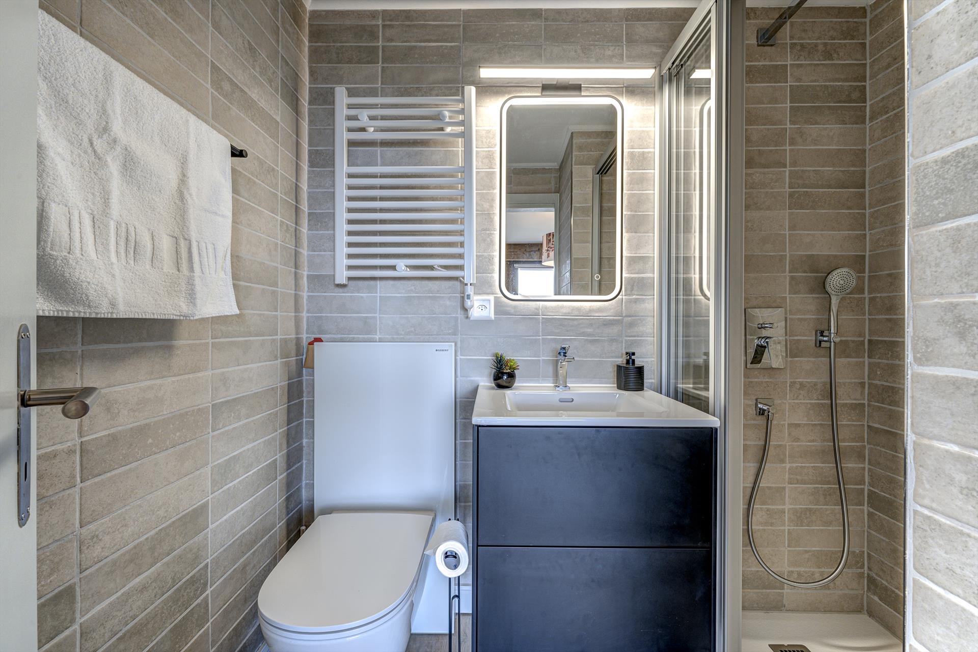 L'appartement peut accueillir jusqu'à 4 personnes. Il y a deux chambres, l'une avec un lit double et l'autre avec deux lits simples. La salle de bains est équipée d'un lavabo, d'une baignoire avec douche, d'un sèche-cheveux et de toilettes.