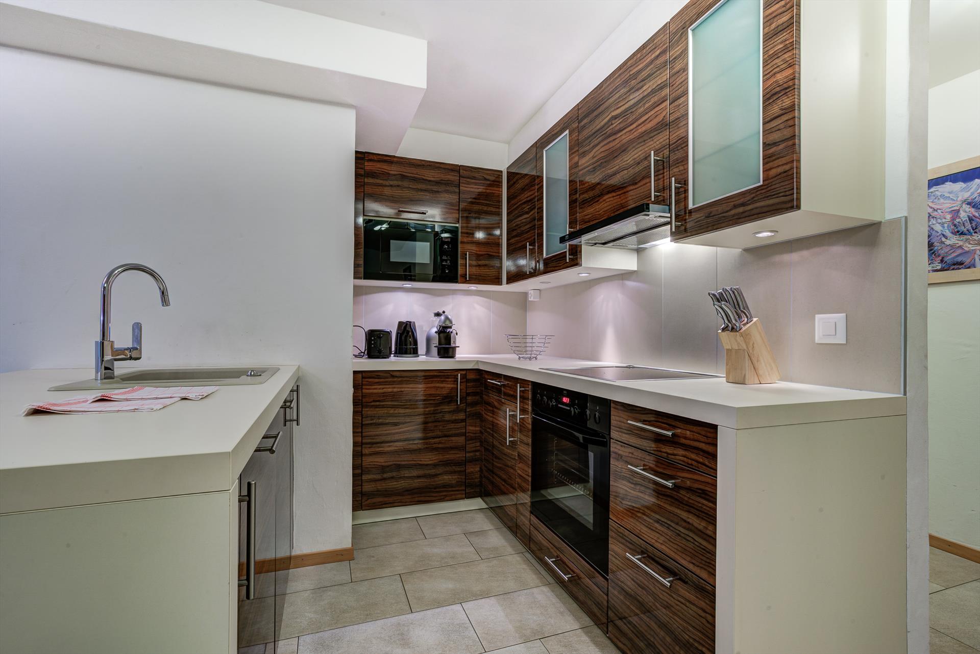 Dans la cuisine, vous trouverez tous les éléments de base nécessaires : un réfrigérateur et un four électrique avec plaque de cuisson, une bouilloire, un grille-pain, une machine à café filtre, une machine à café Nespresso, ainsi que des sets à fondue et à raclette pour une soirée suisse traditionnelle en famille ou entre amis. Un sèche-cheveux, un fer à repasser et un barbecue électrique extérieur portable sont à votre disposition. Une machine à laver et un sèche-linge communs sont disponibles dans le bâtiment.