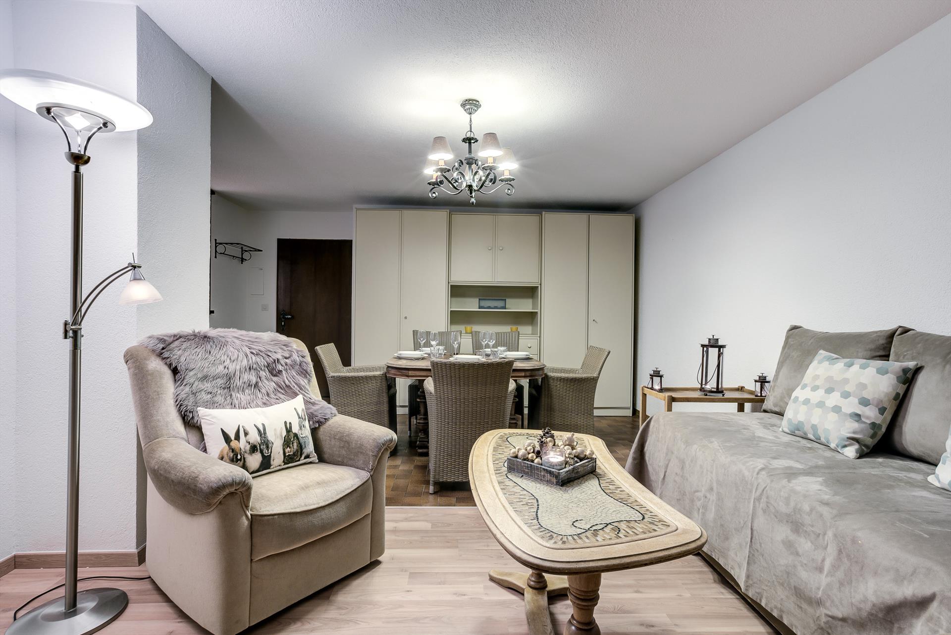 Il y a 2 chambres à coucher et 1 salle de bain. Le voisinage d'endroits pour faire d'activités sportives, d'endroits pour sortir, d'attractions et de culture rend cet appartement un logement convenable pour passer les vacances en Suisse avec votre famille ou vos amis et même vos animaux domestiques.