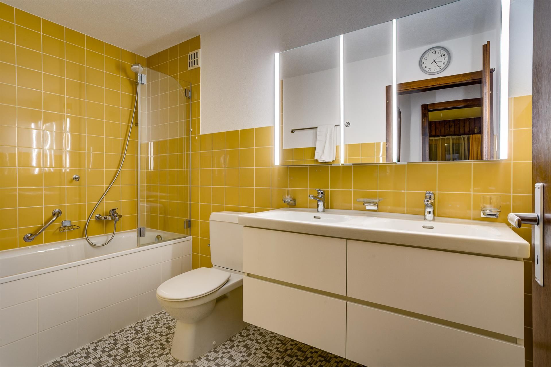 Dans la cuisine, vous trouverez tous les éléments de base : un réfrigérateur, un four, une plaque de cuisson à 4 feux, une bouilloire, un grille-pain, une machine à café filtre, une machine à café Nespresso, ainsi que des sets à fondue et à raclette pour une soirée suisse traditionnelle en commun. Les radiateurs du chauffage central dans chaque chambre peuvent être réglés individuellement selon vos besoins.