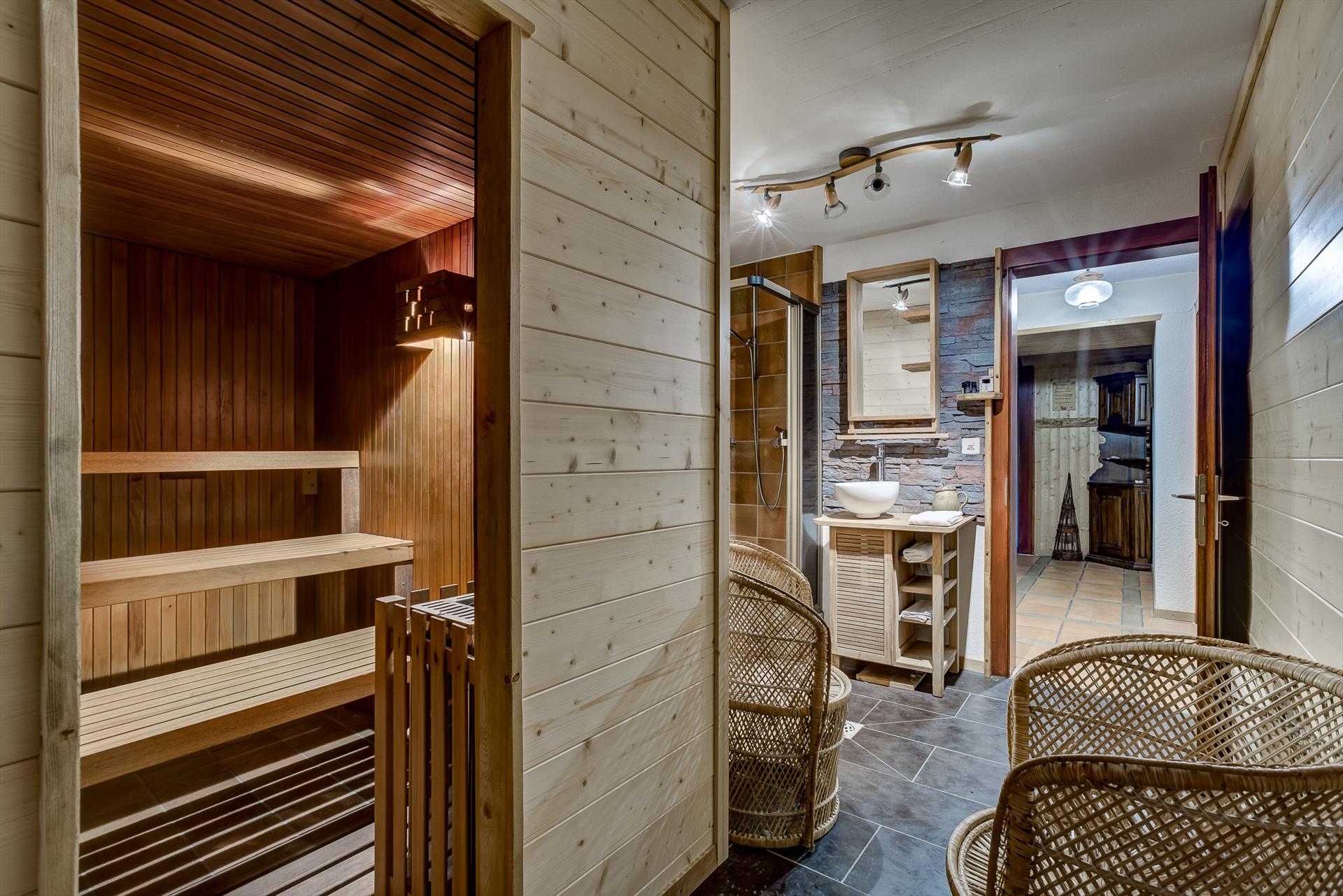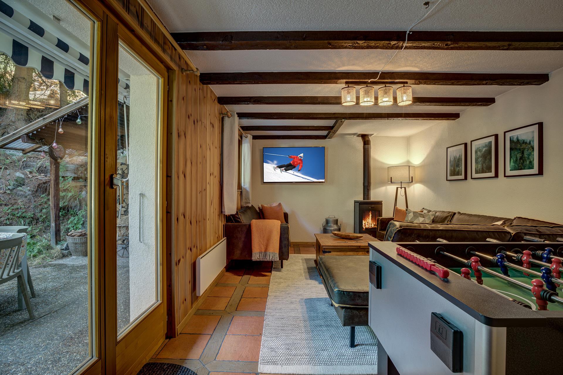 En rentrant à la maison après une longue journée sur les pistes, c'est un véritable plaisir de se détendre dans le sauna avant une douche revigorante. Ensuite, il est difficile de ne pas se détendre quand on est immergé dans ce magnifique cadre forestier avec de jolis flocons de neige qui passent doucement devant la fenêtre. Les membres les plus turbulents du groupe peuvent profiter de la salle de jeux séparée avec son baby-foot et sa télévision par satellite, tandis que vous vous installez dans un fauteuil confortable avec un verre de vin local à la fin d'une fantastique journée à la montagne. En été, les sièges et les salles à manger extérieurs sont un endroit fabuleux pour profiter d'un barbecue à l'heure du déjeuner tout en étant immergé dans le chant des oiseaux.