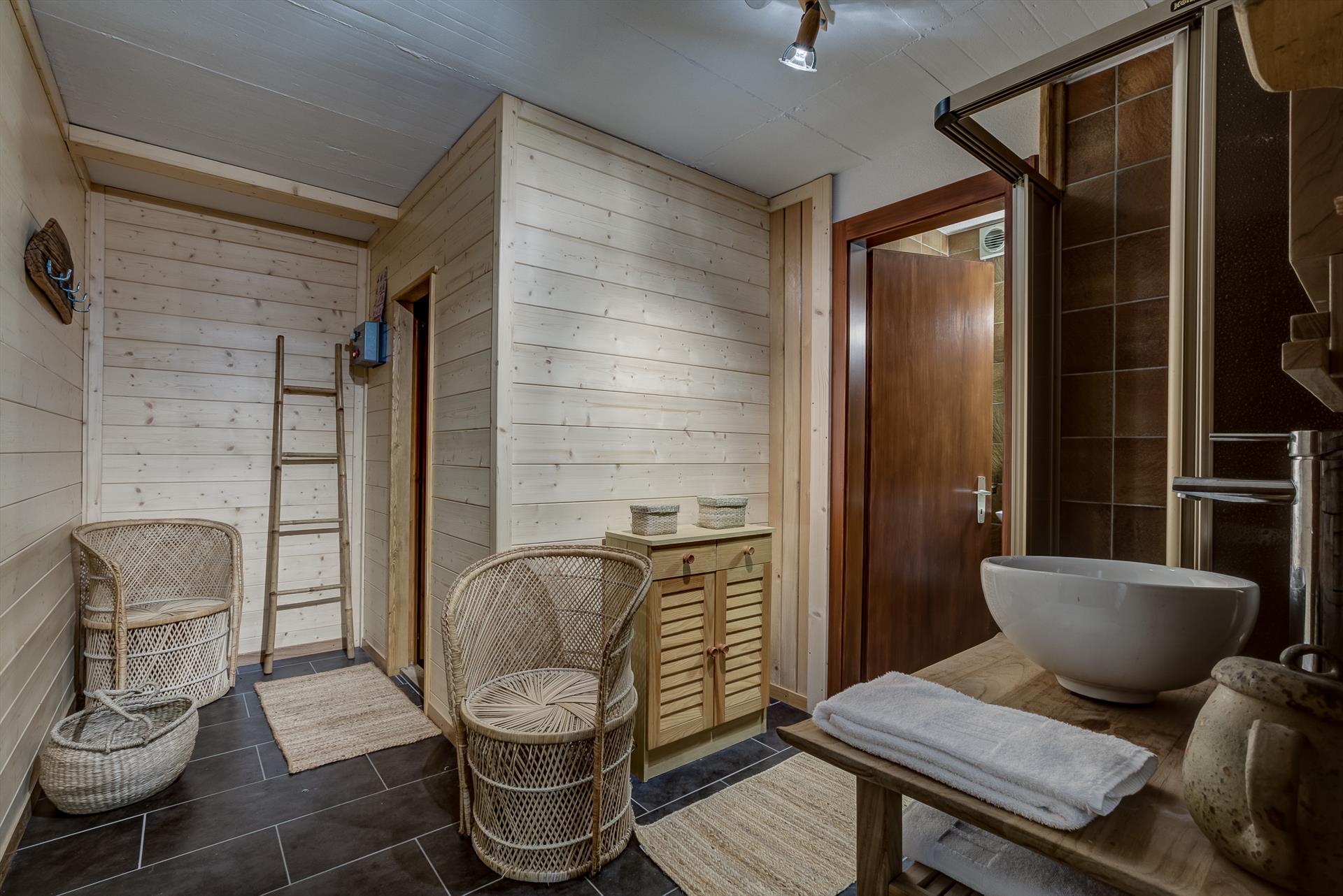 Salle de bains 1 (rez-de-chaussée) - sauna pour 8 personnes, douche, lavabo, WC