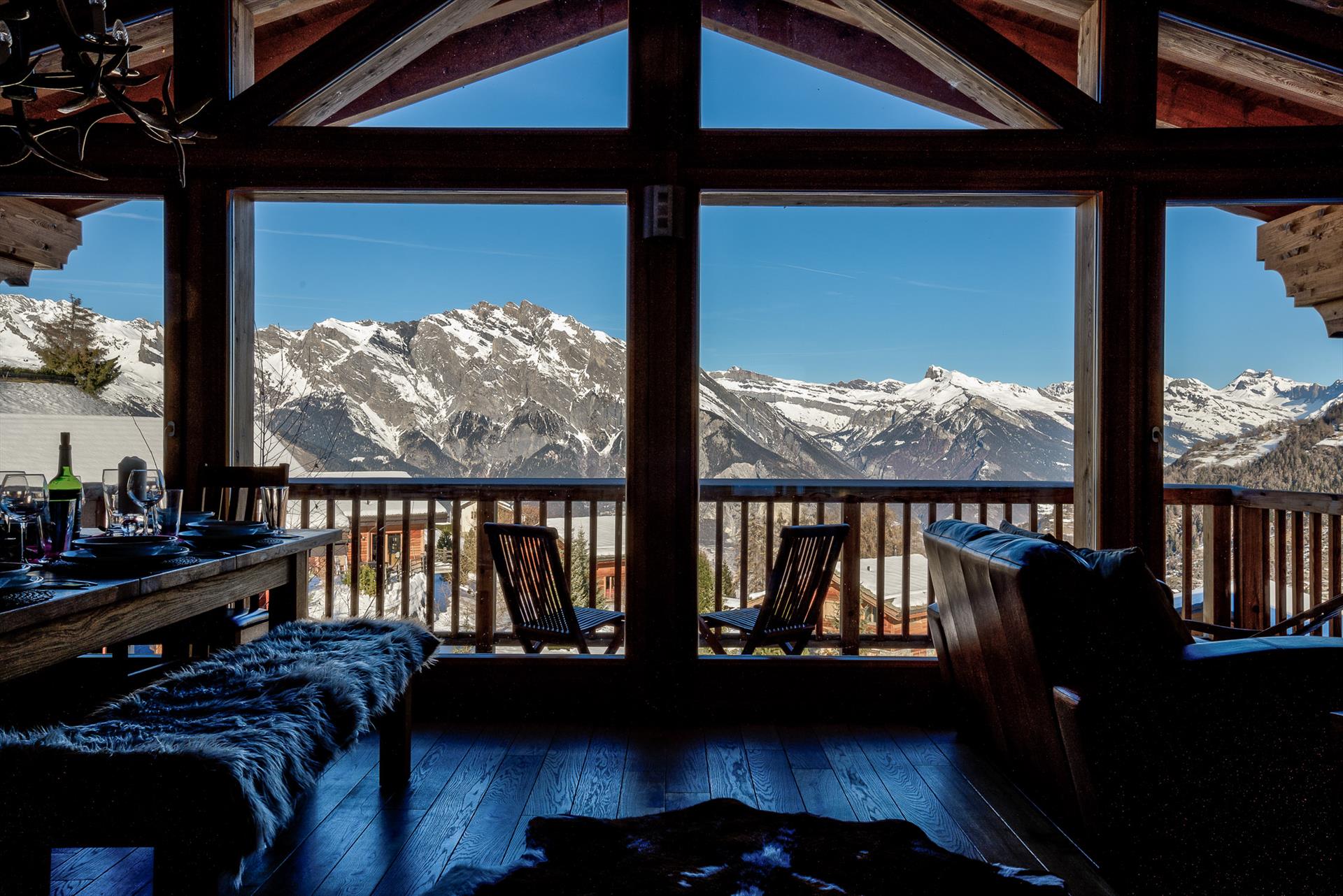 Un magnifique chalet de location de 4 chambres à coucher à La Tzoumaz, dans un emplacement magnifique pour une location d'hiver ou d'été. La totalité de la paroi frontale de l'immense cuisine / salon / salle à manger est en verre, vous offrant une magnifique fenêtre sur des vues panoramiques à couper le souffle sur la vallée et les montagnes au-delà.