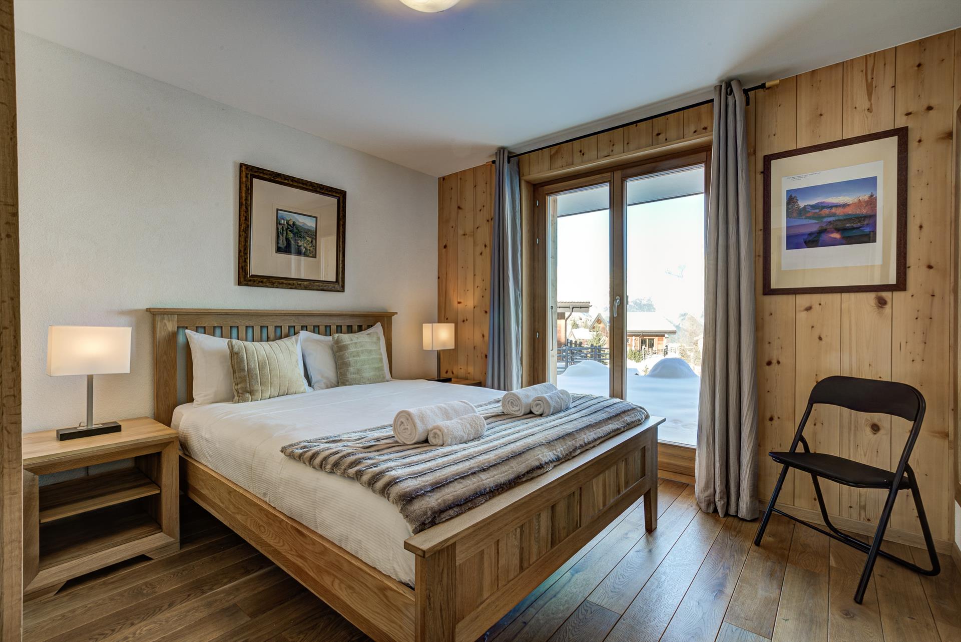 Le seul défi à relever lorsque vous essayez de regarder la télévision moderne à écran plat du fond des canapés somptueusement confortables du salon est d'essayer de ne pas être distrait par les vues magnifiques et toujours changeantes du mur de fenêtres derrière l'écran. Par temps bleu, la vue s'étend sur 20 km, jusqu'aux sommets du Haut de Cry et du Mont Gond, qui dominent de 2000 m le fond de la vallée du Rhône. Lorsque la neige tombe, vous pouvez la regarder dériver lentement devant vous, alors qu'elle se dépose sur le village traditionnel d'Iserables à travers la vallée voisine.