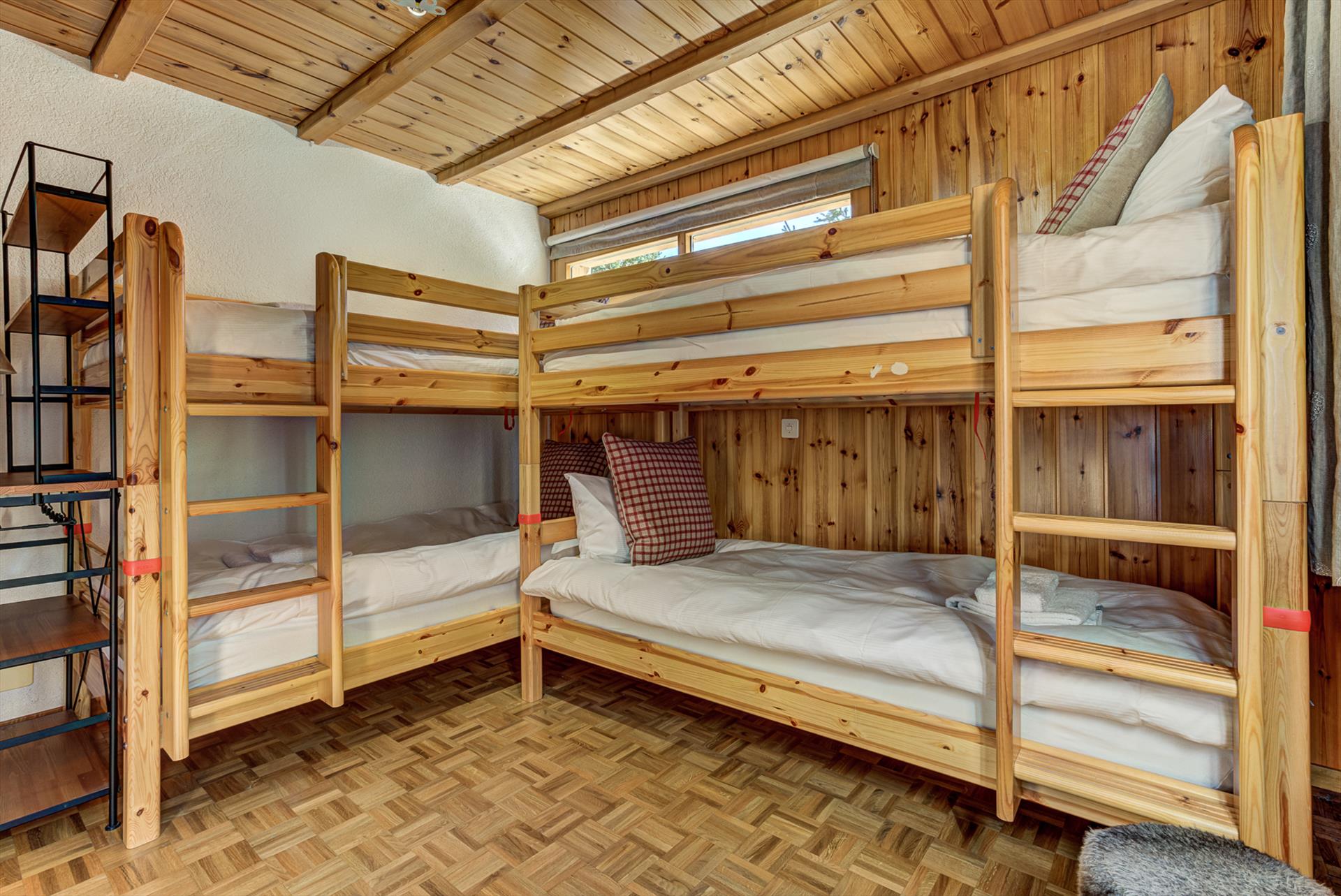 - chambre avec lits superposés pour 4 personnes, des fenêtres sur deux côtés et une armoire.
