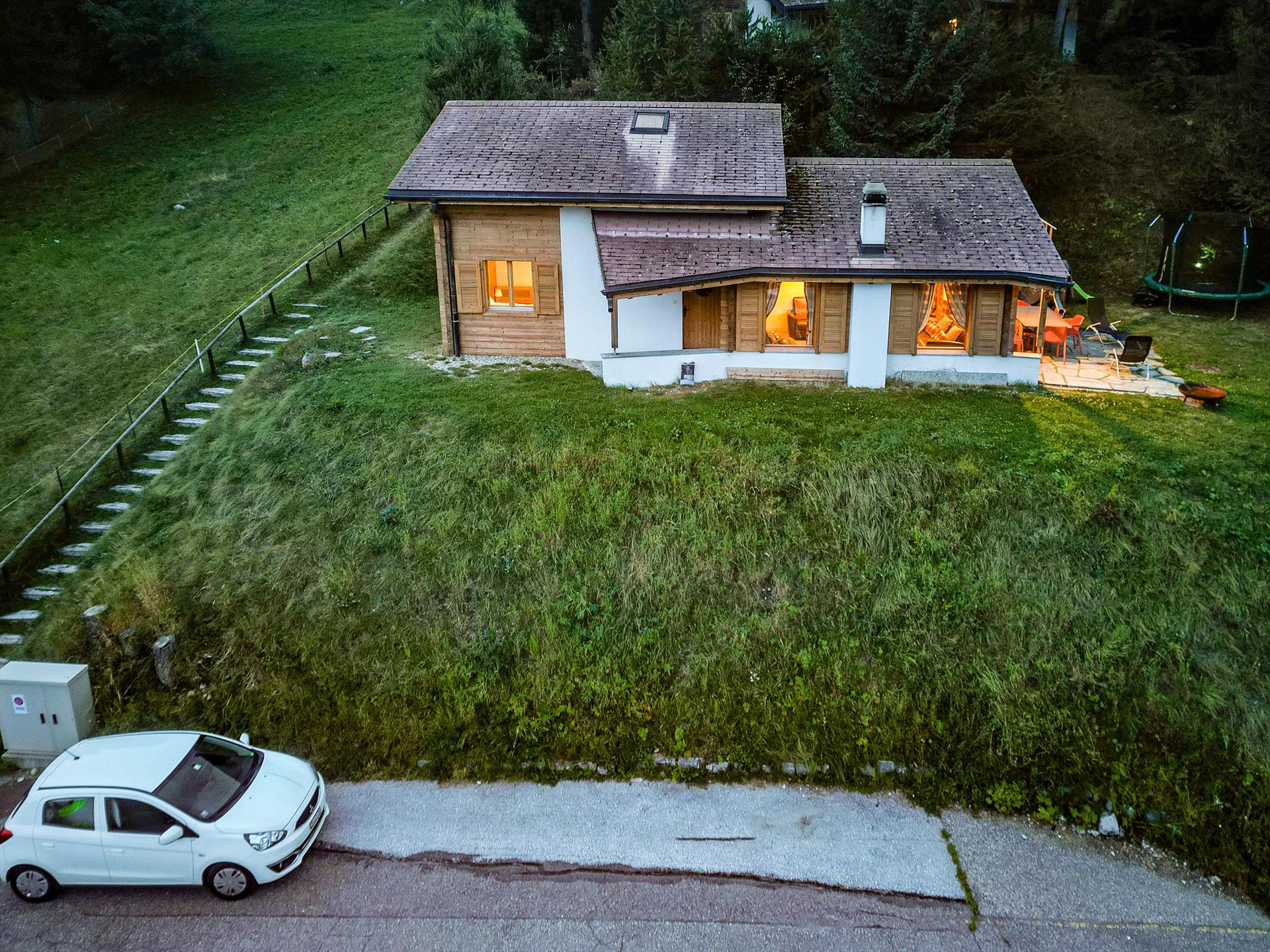 Il y a un parking dédié pour une voiture directement sous le chalet. 22 marches mènent du parking au chalet. Des pneus d'hiver et/ou des chaînes à neige sont nécessaires en hiver en raison des fréquentes chutes de neige. Un autre parking est disponible à 80 mètres, sur une aire de stationnement sur la route. Il est conseillé d'avoir au moins une voiture, été comme hiver. Contactez-nous pour les transferts ferroviaires ou aéroportuaires de vos invités.