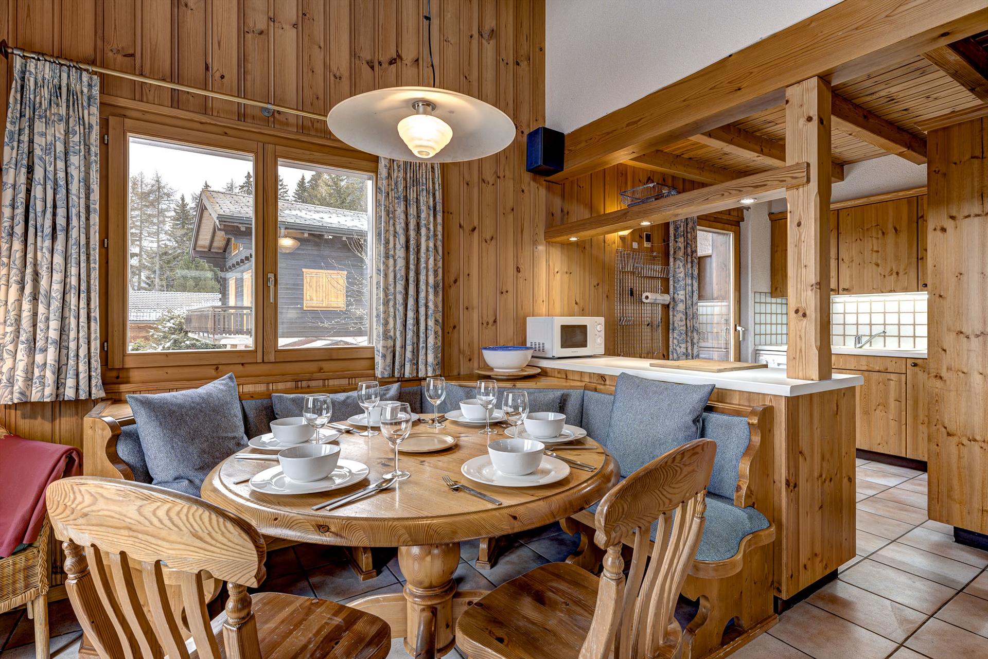 L'étage principal du chalet est un espace ouvert cuisine/salon/salle à manger. La cuisine est entièrement équipée de tout ce dont vous pourriez avoir besoin pour vos vacances : réfrigérateur-congélateur, lave-vaisselle, micro-ondes, grille-pain, bouilloire, cafetière électrique et même une machine à café Nespresso. Il y a des appareils à fondue et à raclette pour une soirée suisse traditionnelle devant le feu de bois. Lave-linge (avec sèche-linge intégré), sèche-cheveux, fer à repasser et barbecue extérieur portable sont à votre disposition.