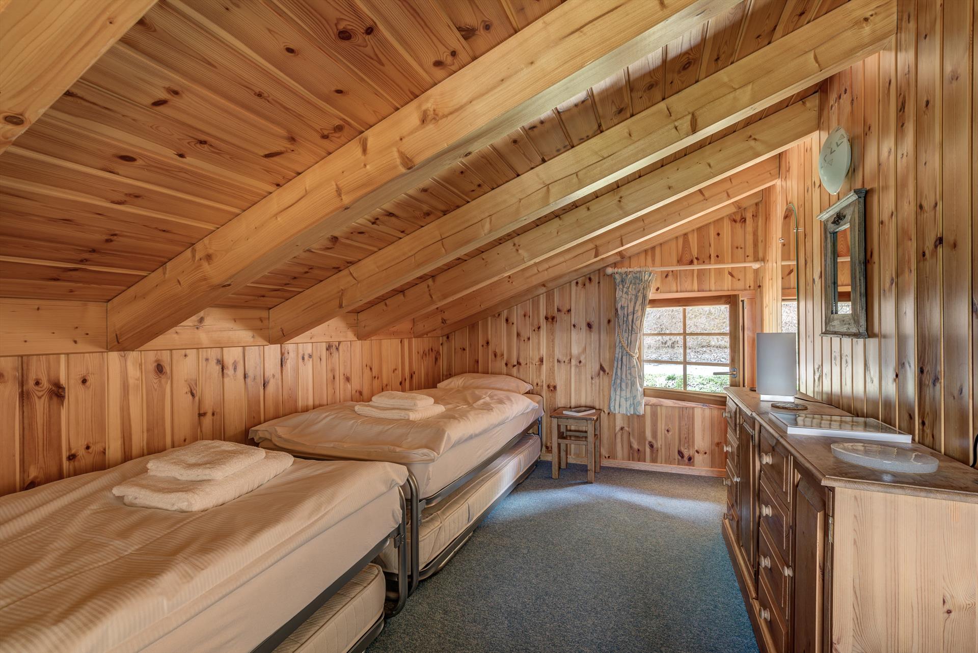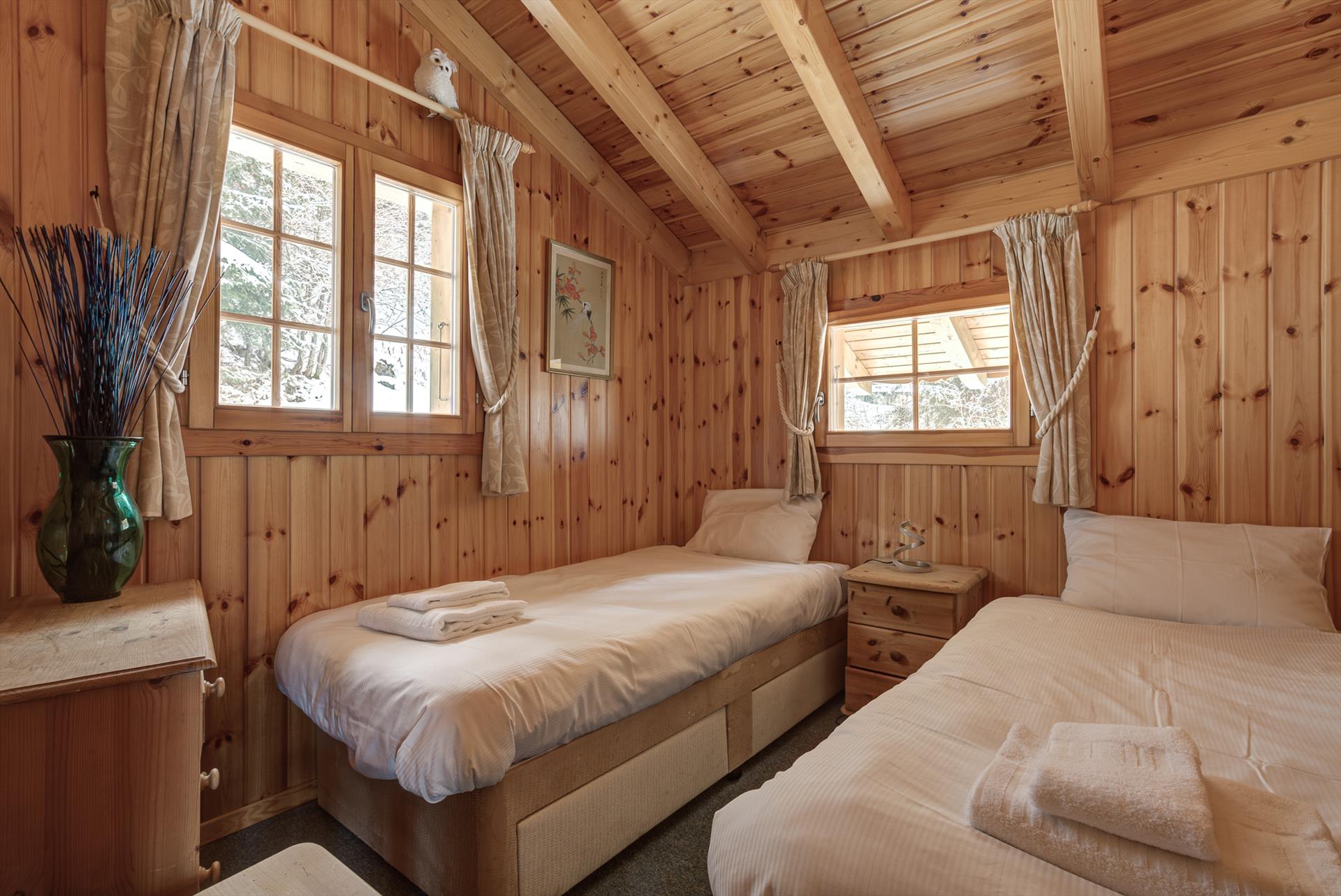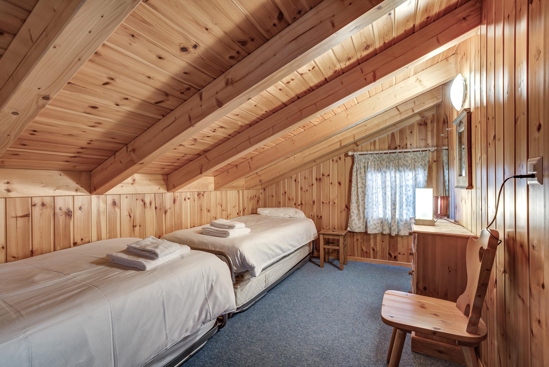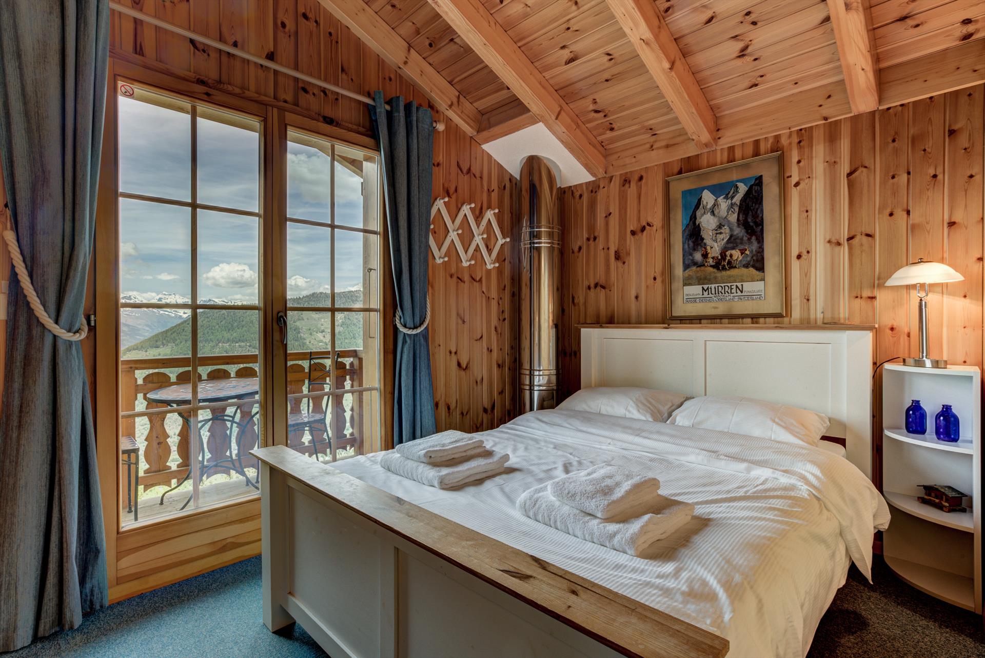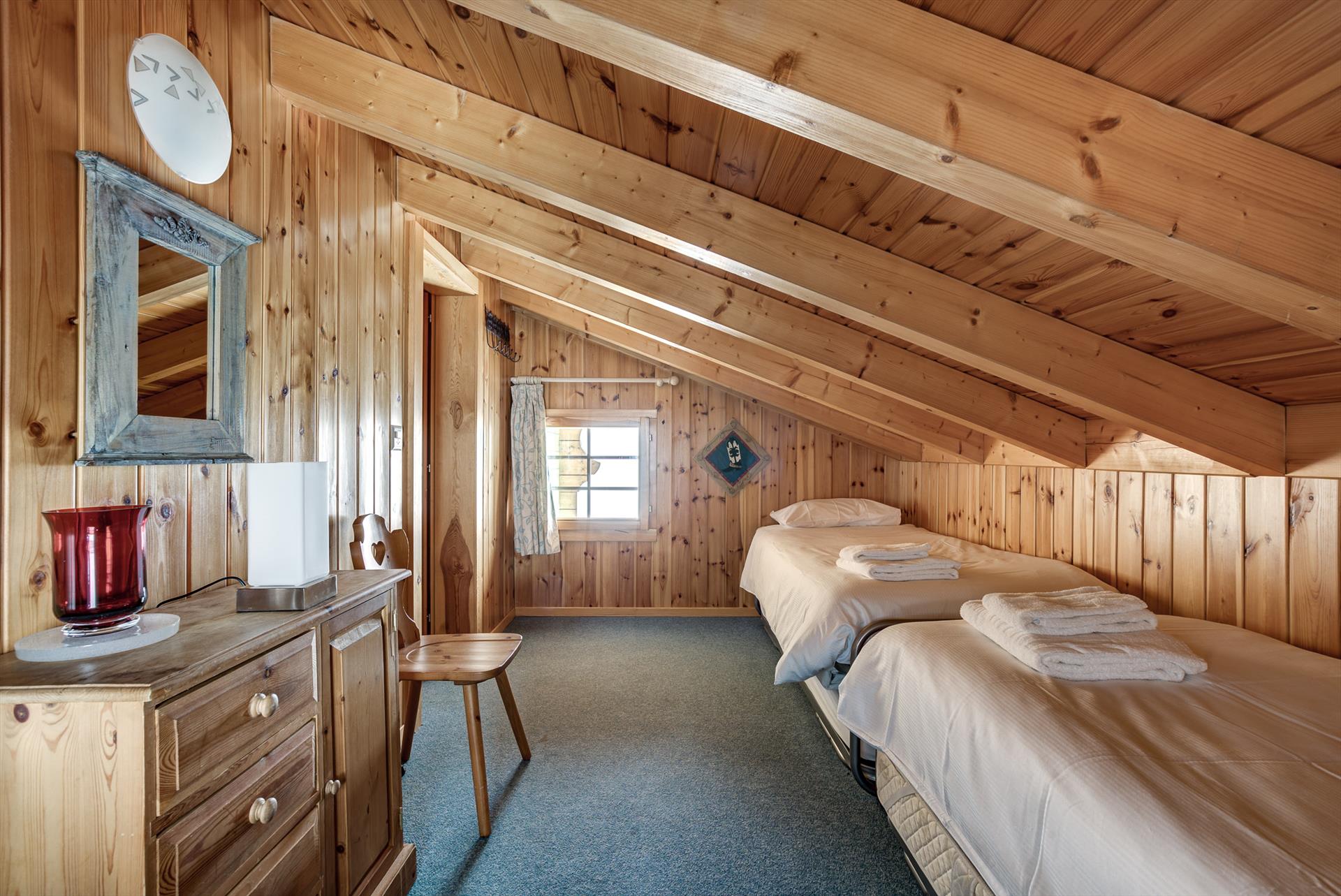 Ce chalet de quatre chambres est idéal pour 8 adultes ou jusqu'à 6 adultes et 4 enfants. Il y a deux chambres doubles, une chambre à deux lits, et une quatrième chambre qui est parfaite pour les enfants avec son toit en pente et jusqu'à quatre lits. Il y a deux salles de bains, une avec une douche et l'autre avec une baignoire. La Tzoumaz Chalet Mont Rose est équipé d'une chaise haute et d'un lit de voyage pliant (literie non fournie) adaptés aux enfants de moins de 2 ans, et un second est disponible sur demande à l'arrivée. Veuillez noter que, conformément aux instructions de sécurité du fabricant, les matelas supplémentaires ne sont pas fournis avec les lits bébé.